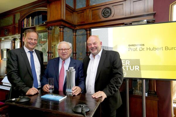 Die markanten Bauten der Firma Burda prägen das Stadtbild von Offenburg schon seit vielen Jahren. Am Mittwoch hat Unternehmenschef Hubert Burda dafür den Sonderpreis für identitätsstiftende Architektur erhalten.
