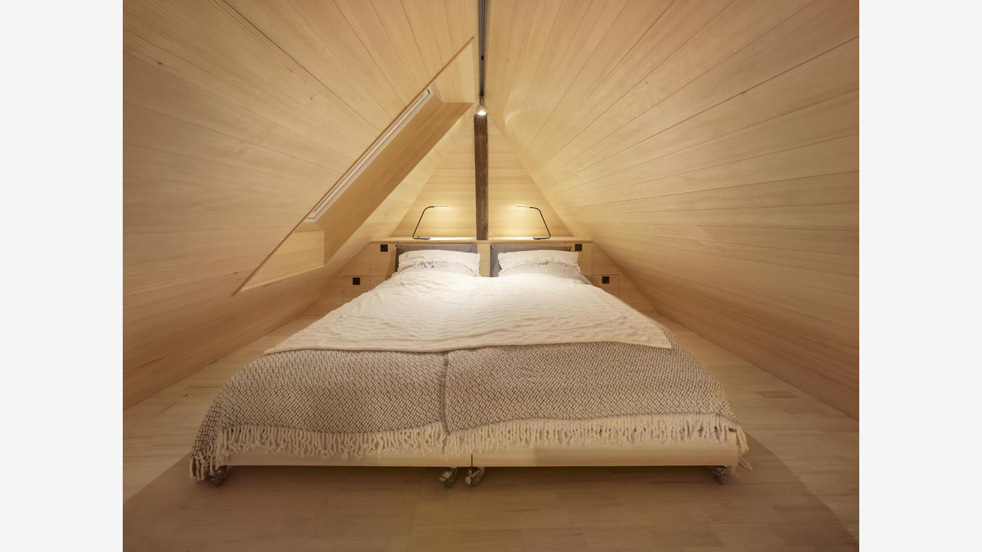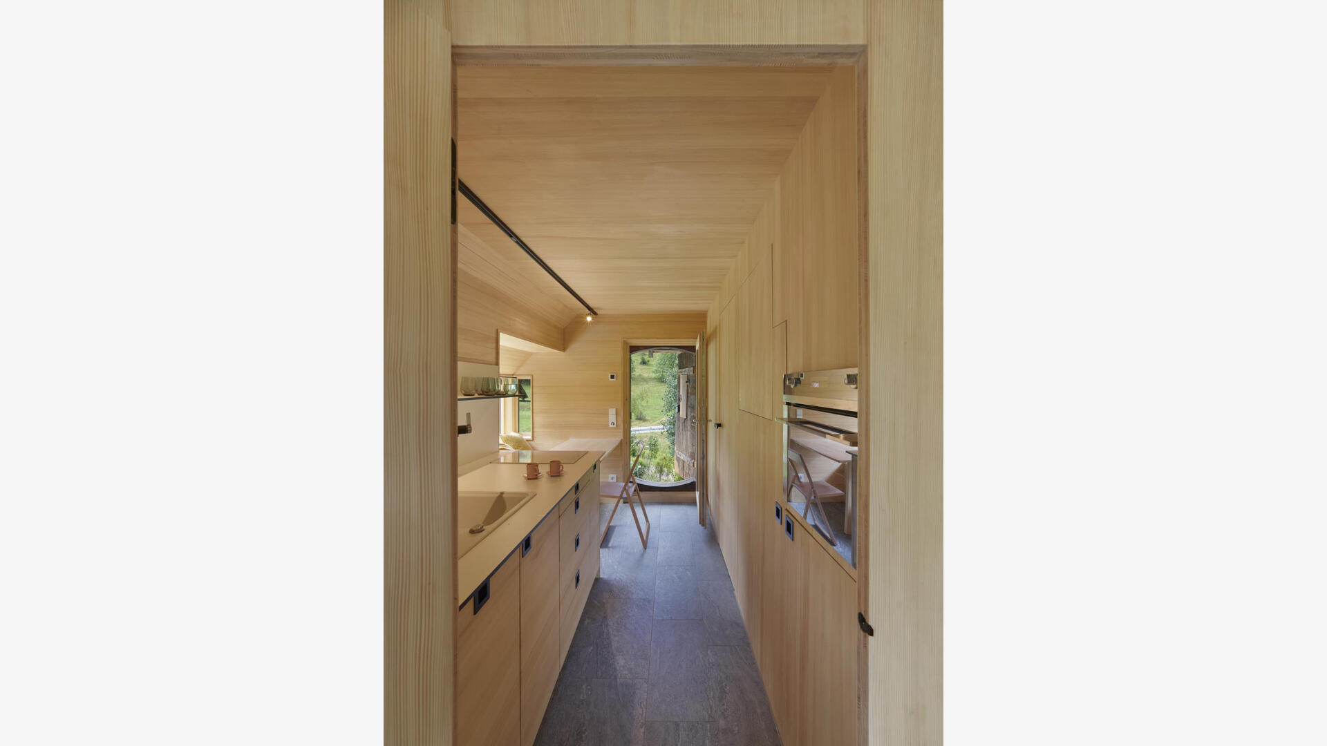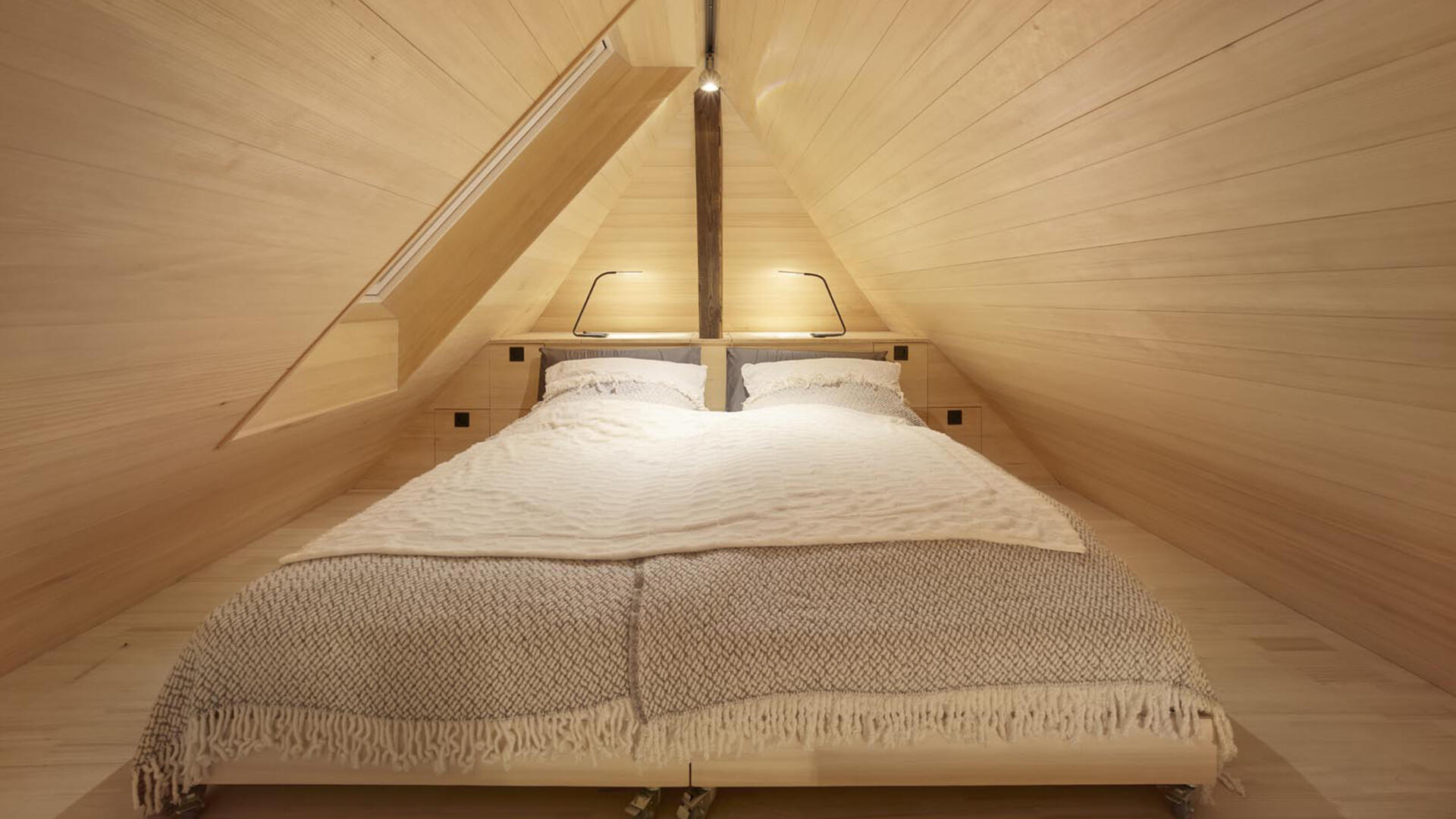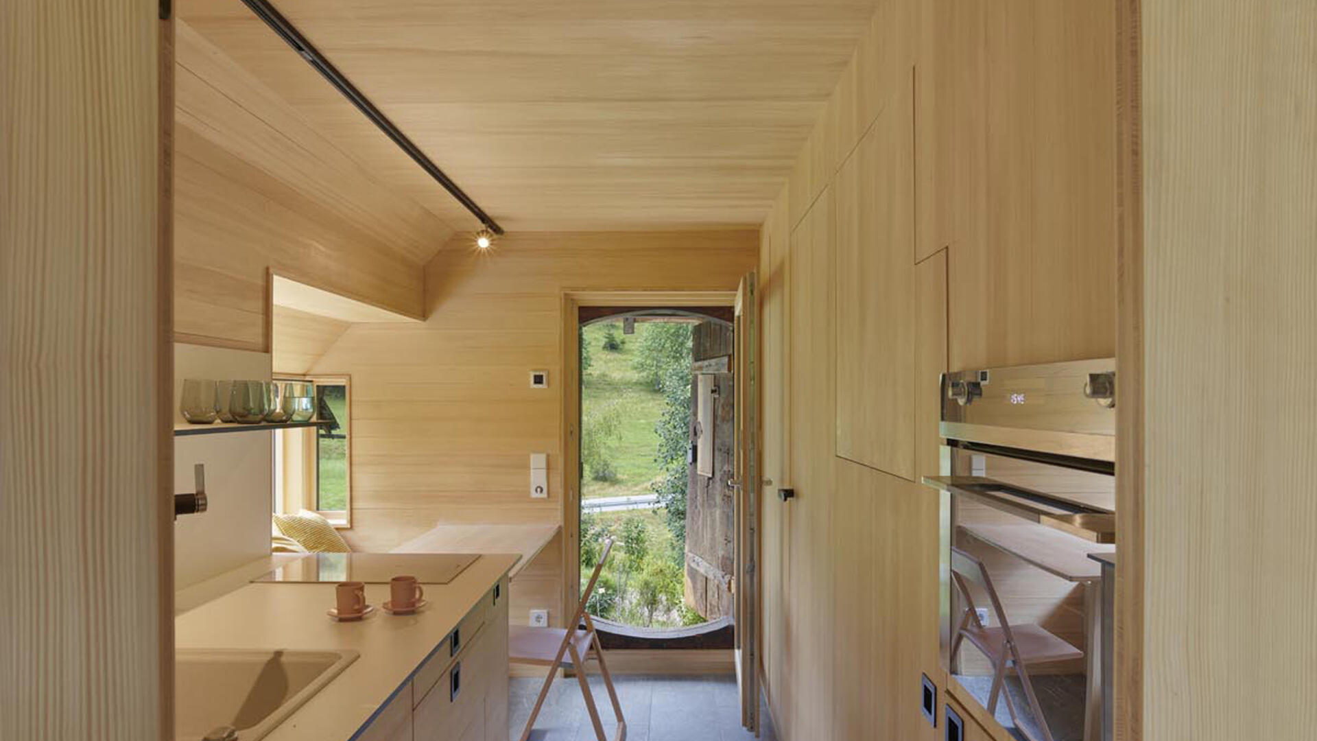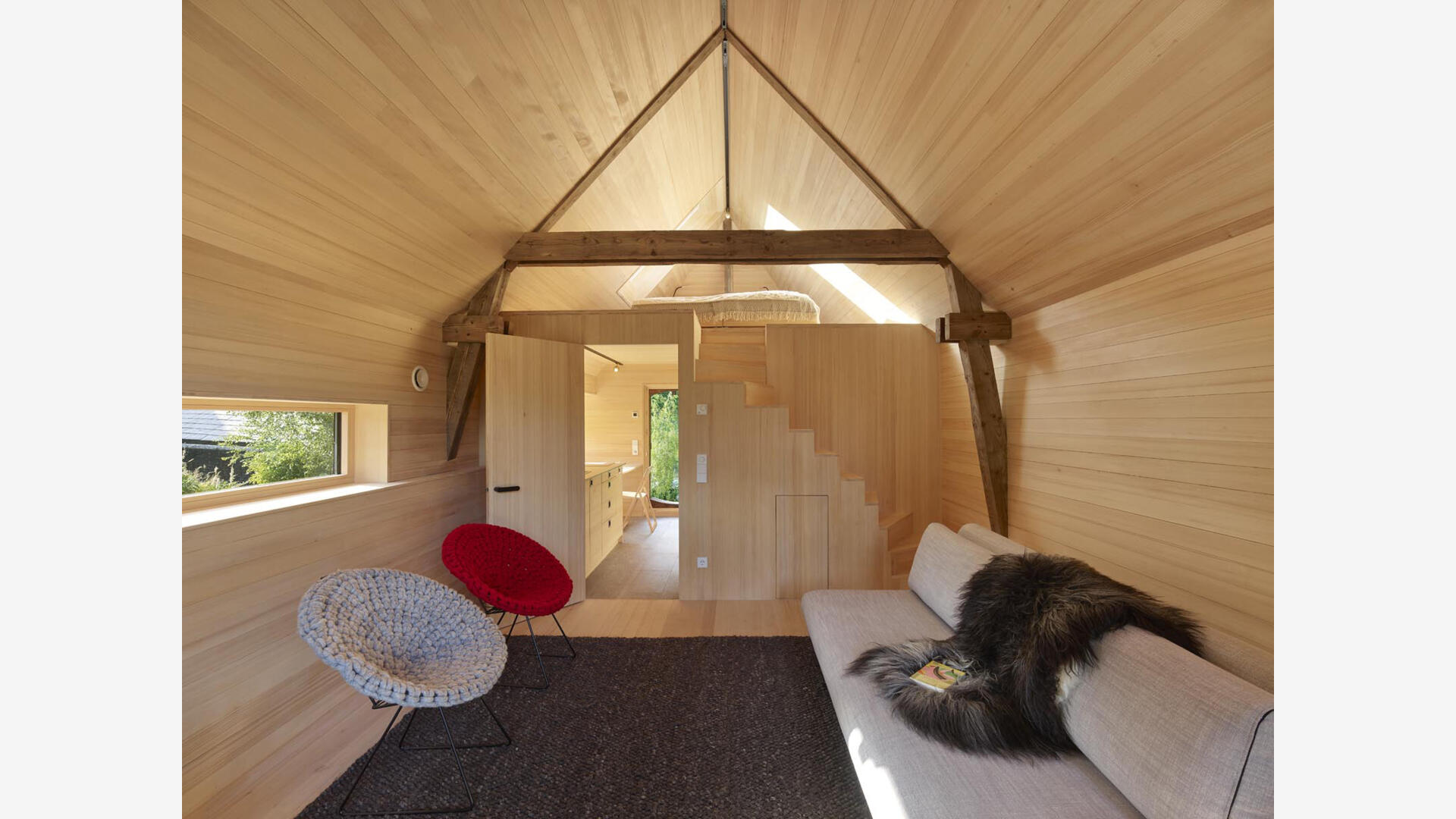 Im Hochschwarzwald wurde auf 1000m Höhe ein bestehender Holzschuppen in ein kleines Einfamilienhaus (Tinyhouse) umgebaut, der Teil eines denkmalgeschützten Bauernhofs von 1659 ist. Dabei blieb die äußere Hülle inkl. der Dacheindeckung erhalten. Nur wenige Eingriffe, wie die Erker in der Fassade, lassen von außen erkennen, dass hier ein Umbau stattgefunden hat. Die bereits vorhandenen Öffnungen, das große Scheunentor sowie die talseitige Holztür, dienen nun als Läden für die neuen großzügigen Festverglasungen mit Glastüren.