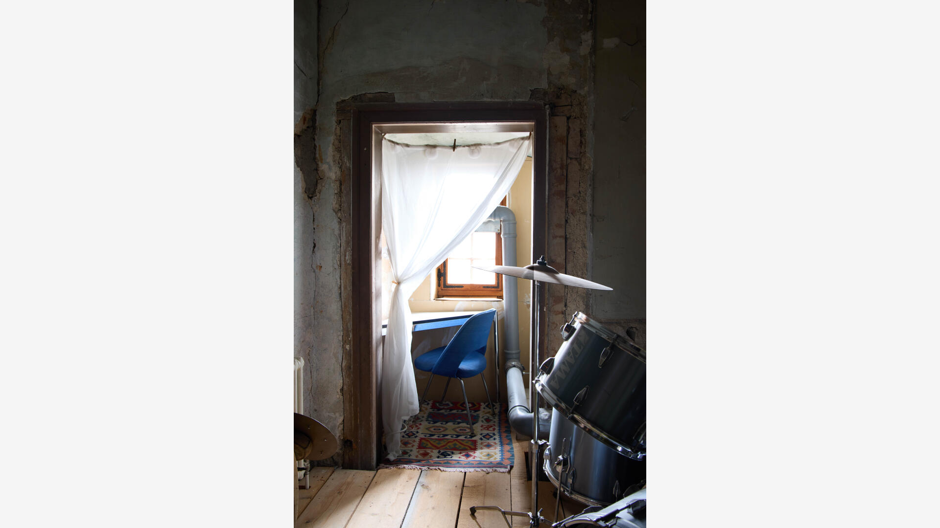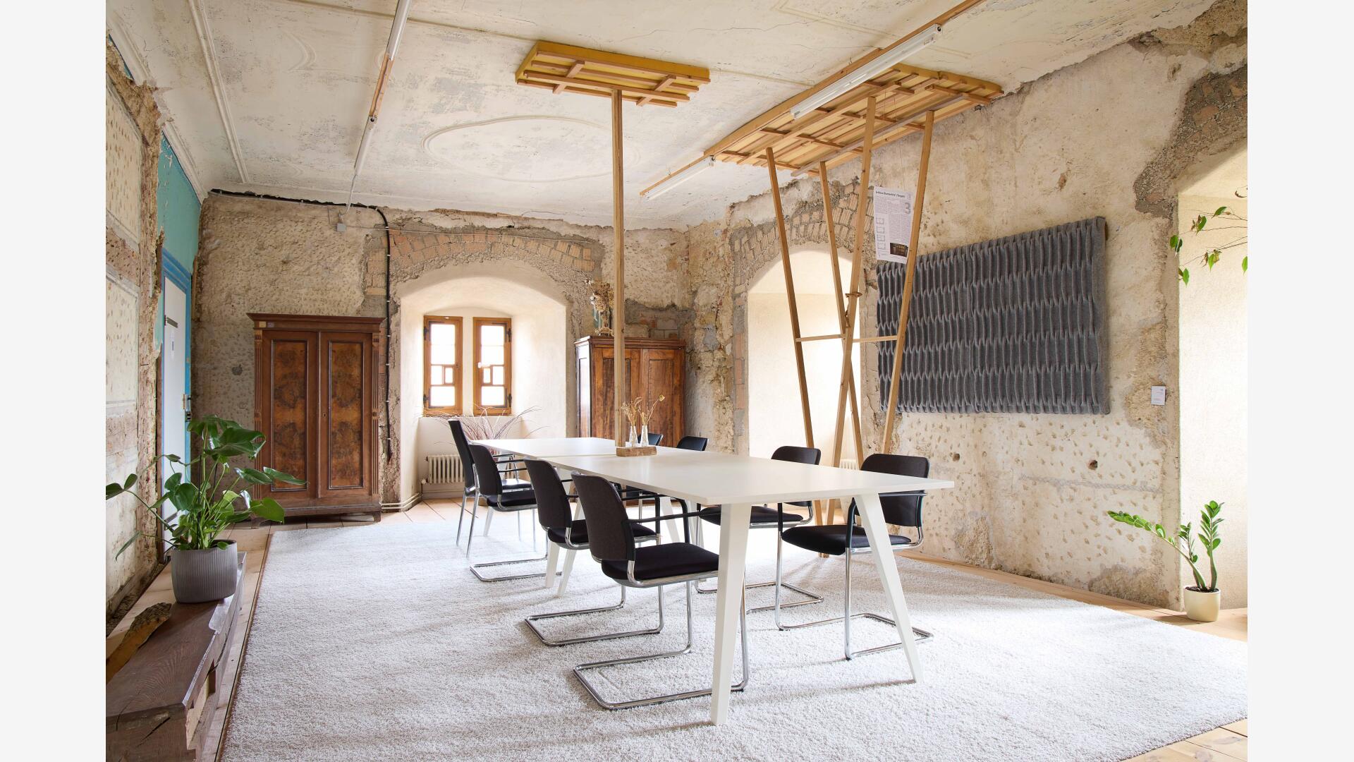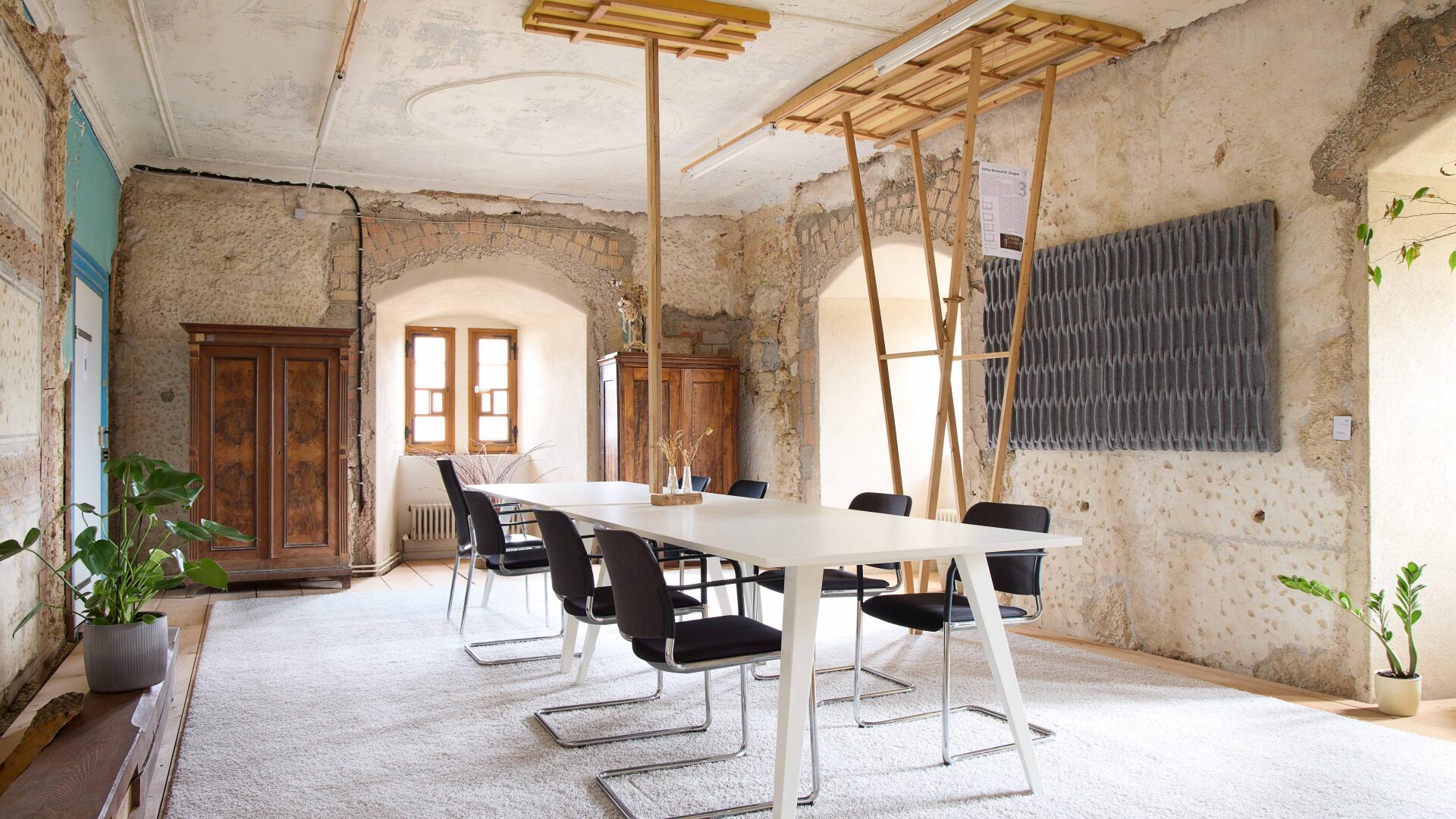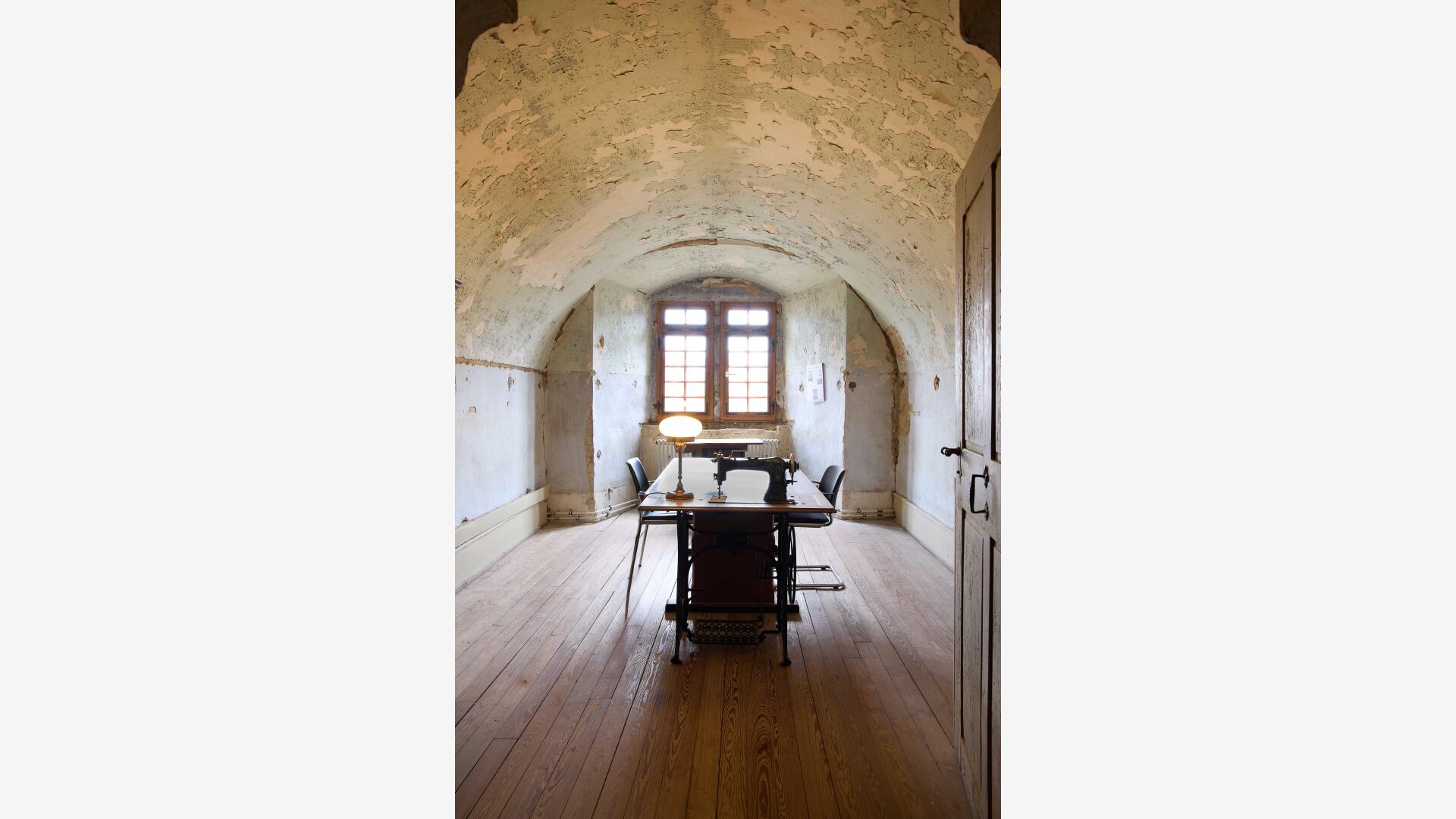 Grundhaltung war und ist, die Nutzung dem unfertigen, unperfekten Kulturdenkmal zu unterwerfen und sozialökologisch und respektvoll mit dem Vorgefundenen umzugehen. Also wird bewusst nicht saniert oder gebaut. Mit äußerst behutsamen Maßnahmen wird dem Brandschutz, der Denkmalpflege und dem Gebäudeerhalt gedient. Der schlichten Bereitstellung von Raum, dem Grundgedanken von Architektur, wird hier verantwortungsvoll, demokratiefördernd und sinnlich gefrönt.