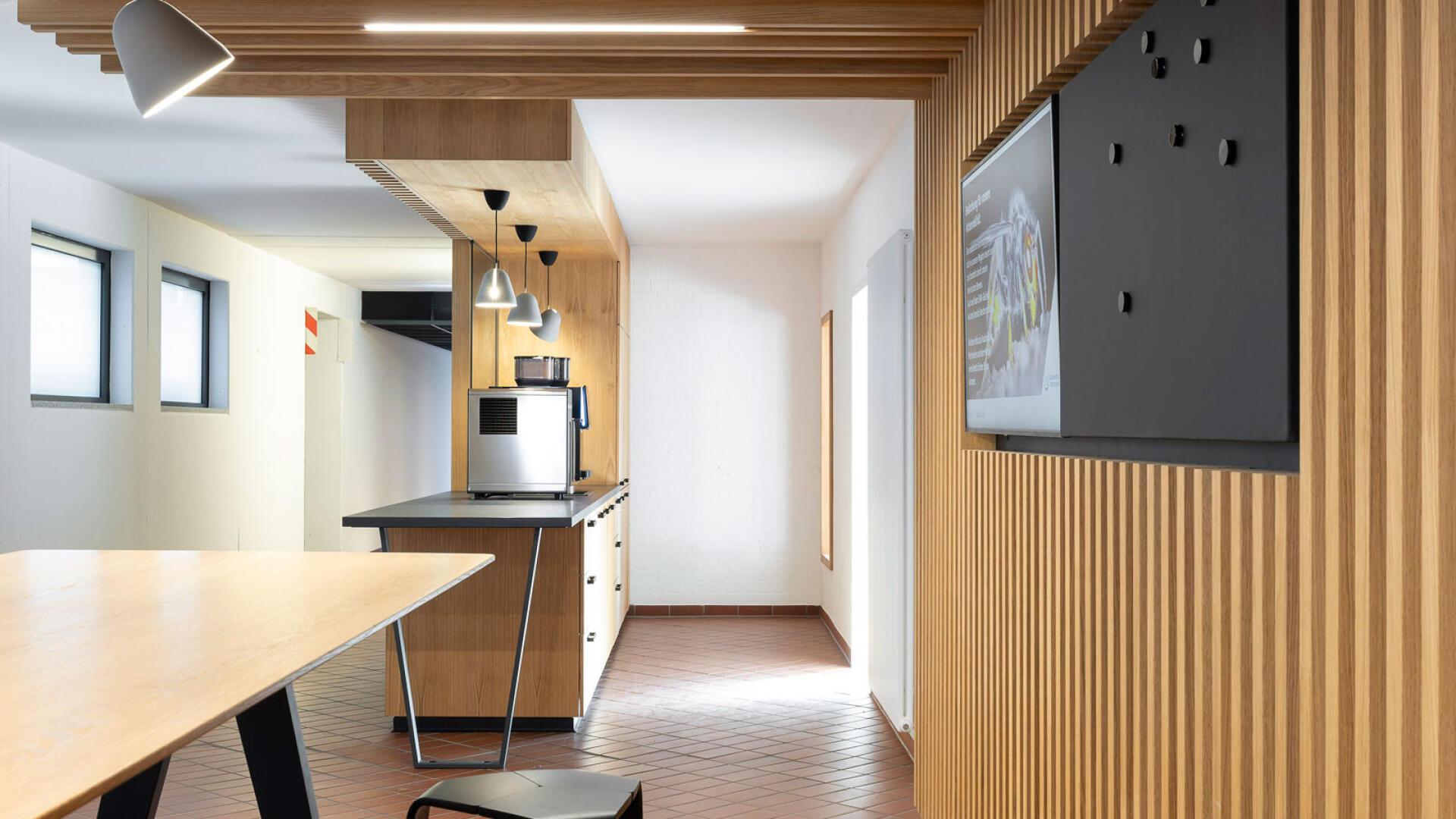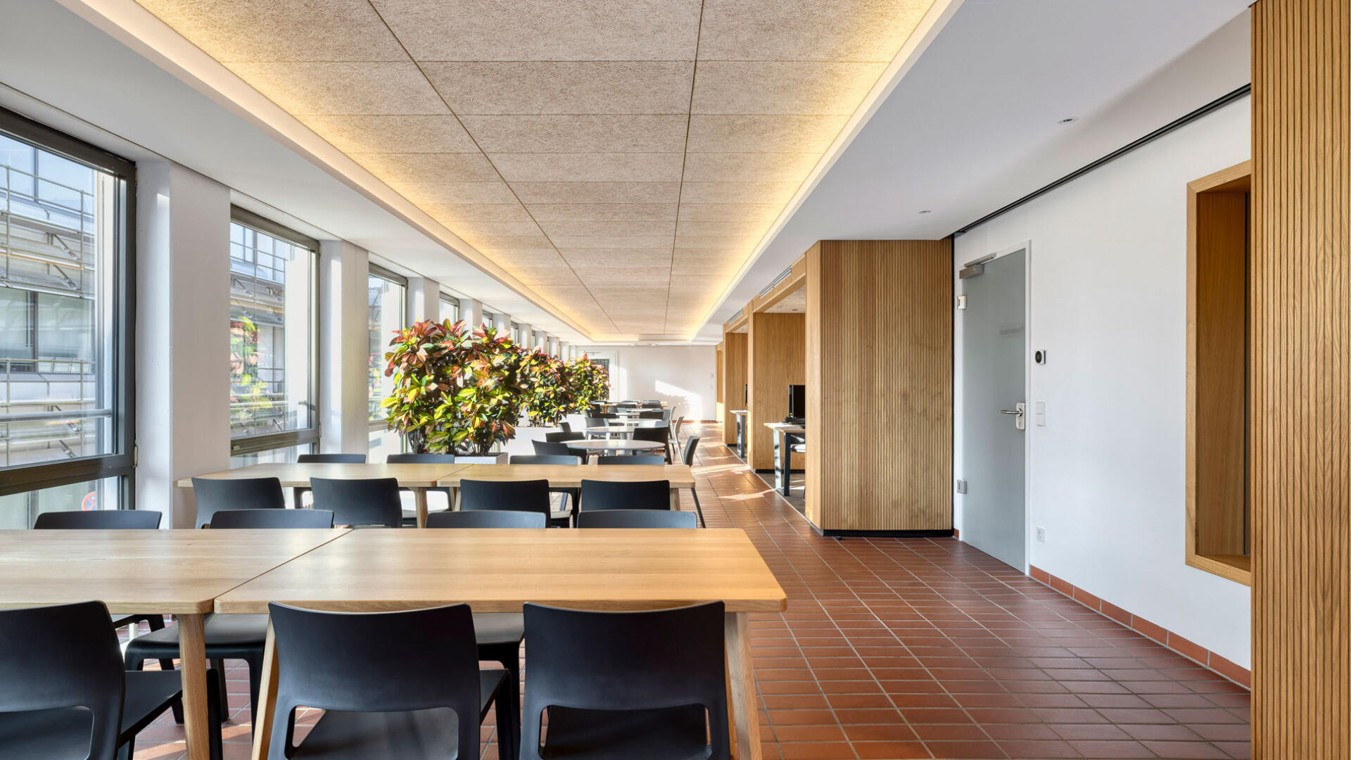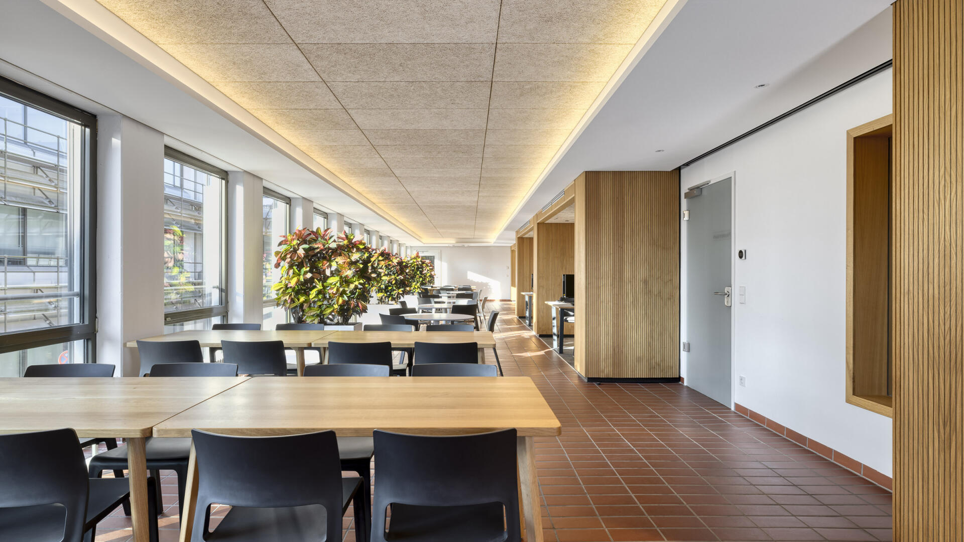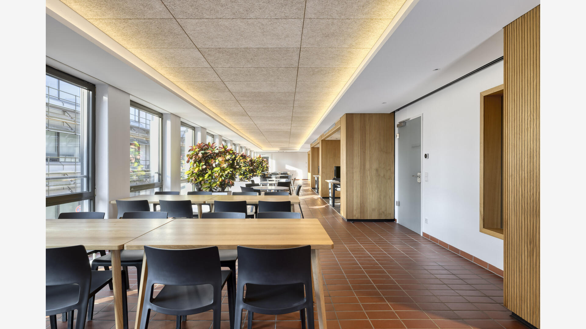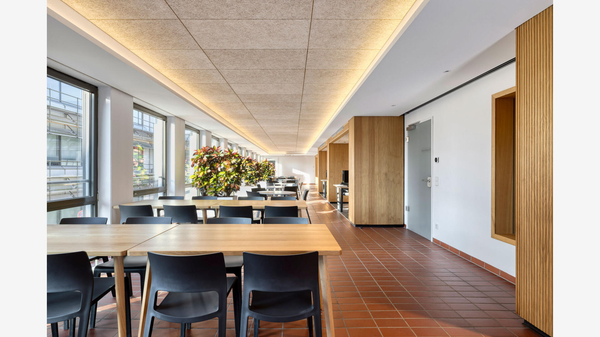 Sanierung und Brandschutzertüchtigung: Der Bau 9 im Gebäudebestand der Stadtwerke Karlsruhe dient als Sozialgebäude mit Umkleiden, Sanitär- und Aufenthaltsräumen. Ziel der Sanierung war die funktionale, gestalterische und brandschutztechnische Erneuerung. Die Arbeiten erfolgten im laufenden Betrieb, daher wurden die Innenräume in drei Bauabschnitten bis auf Rohbauniveau zurückgebaut und saniert. Zwölf Sanitärkerne mit Duschanlagen sowie alle Gemeinschaftsräume wurden vollständig erneuert. Im Sinne der Nachhaltigkeit wurden vorhandene Bauteile wie der Spaltklinkerboden, Treppengeländer und Sitzbänke erhalten und aufgearbeitet. Teile der Rohbau-, Schlosser- und Tischlerarbeiten wurden von eigenen Fachkräften der Stadtwerke ausgeführt.