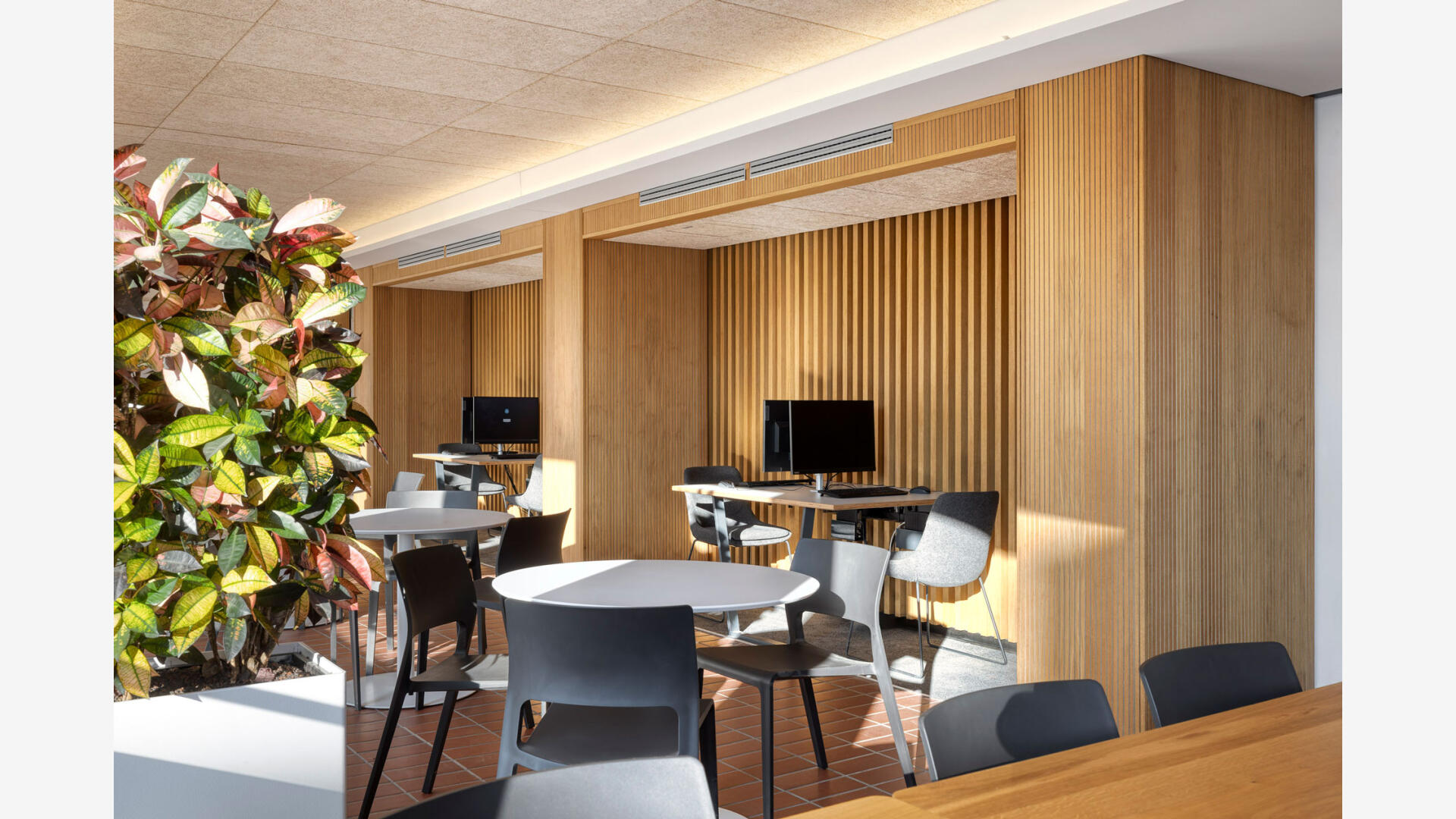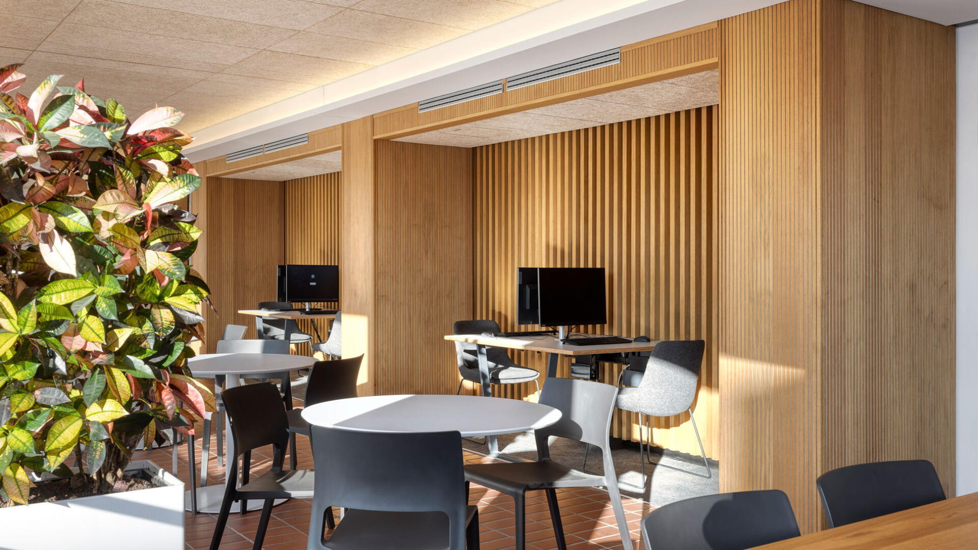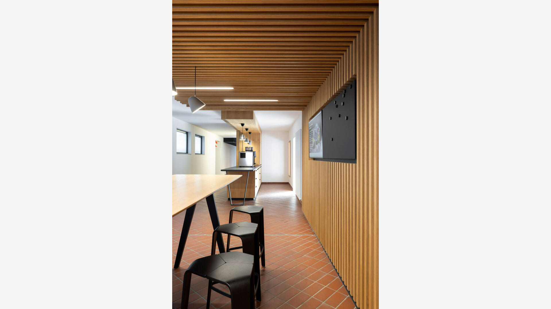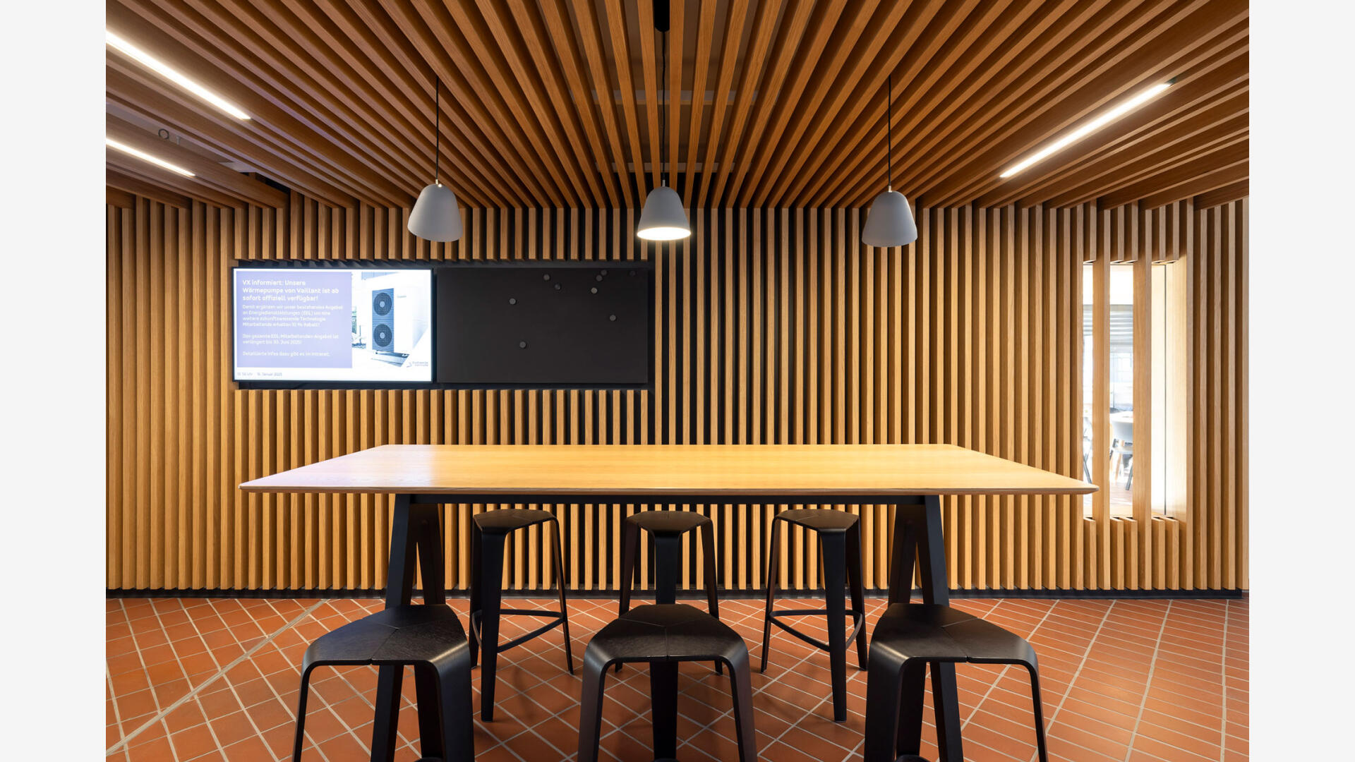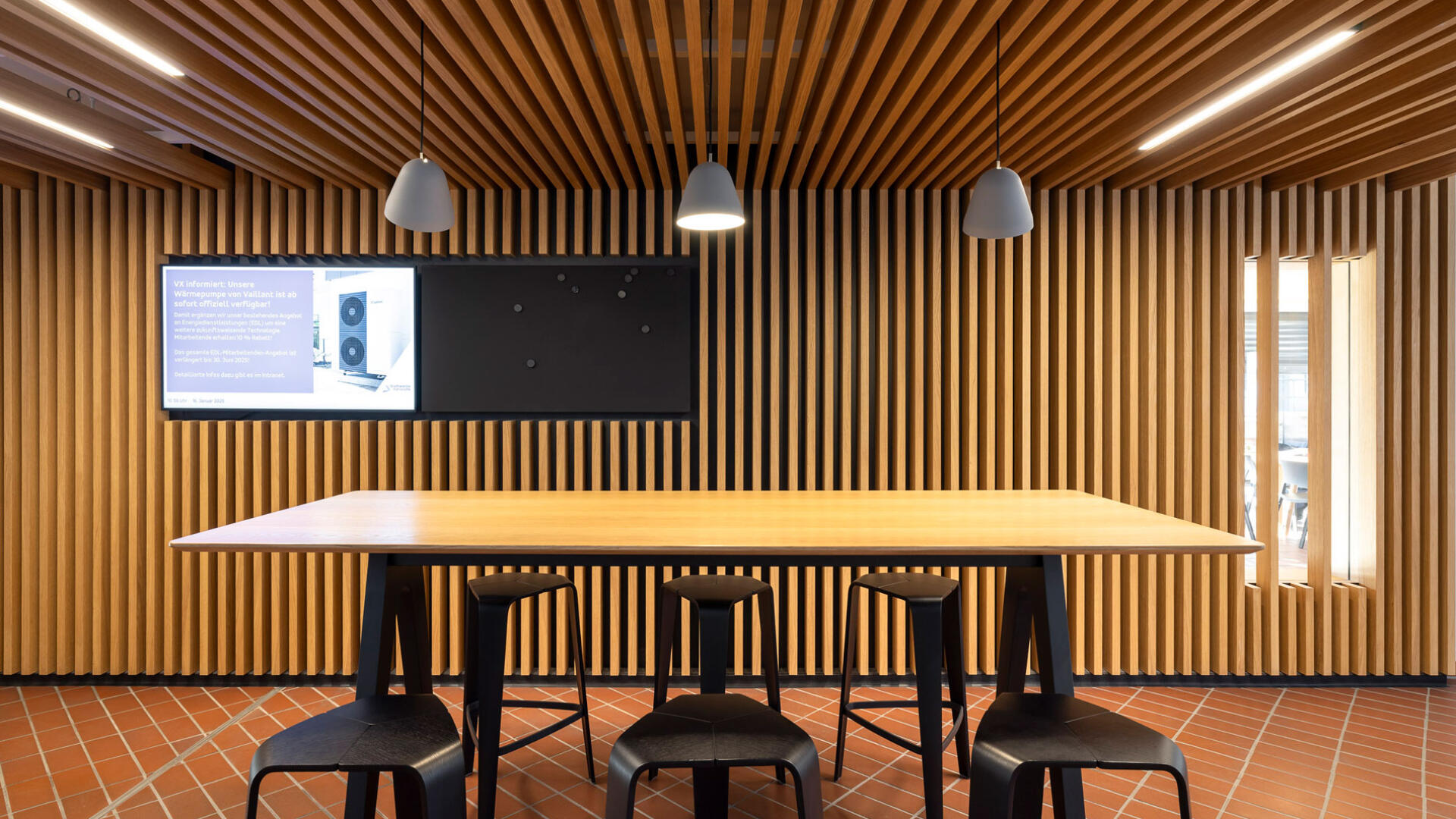 Sanierung und Brandschutzertüchtigung: Der Bau 9 im Gebäudebestand der Stadtwerke Karlsruhe dient als Sozialgebäude mit Umkleiden, Sanitär- und Aufenthaltsräumen. Ziel der Sanierung war die funktionale, gestalterische und brandschutztechnische Erneuerung. Die Arbeiten erfolgten im laufenden Betrieb, daher wurden die Innenräume in drei Bauabschnitten bis auf Rohbauniveau zurückgebaut und saniert. Zwölf Sanitärkerne mit Duschanlagen sowie alle Gemeinschaftsräume wurden vollständig erneuert. Im Sinne der Nachhaltigkeit wurden vorhandene Bauteile wie der Spaltklinkerboden, Treppengeländer und Sitzbänke erhalten und aufgearbeitet. Teile der Rohbau-, Schlosser- und Tischlerarbeiten wurden von eigenen Fachkräften der Stadtwerke ausgeführt.