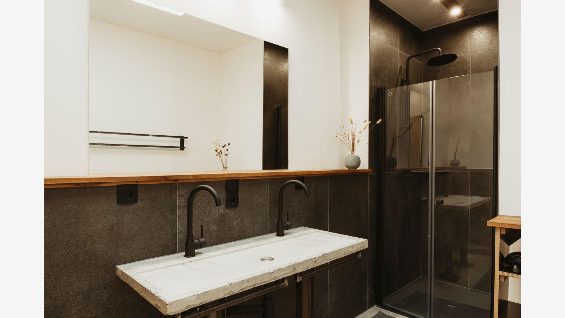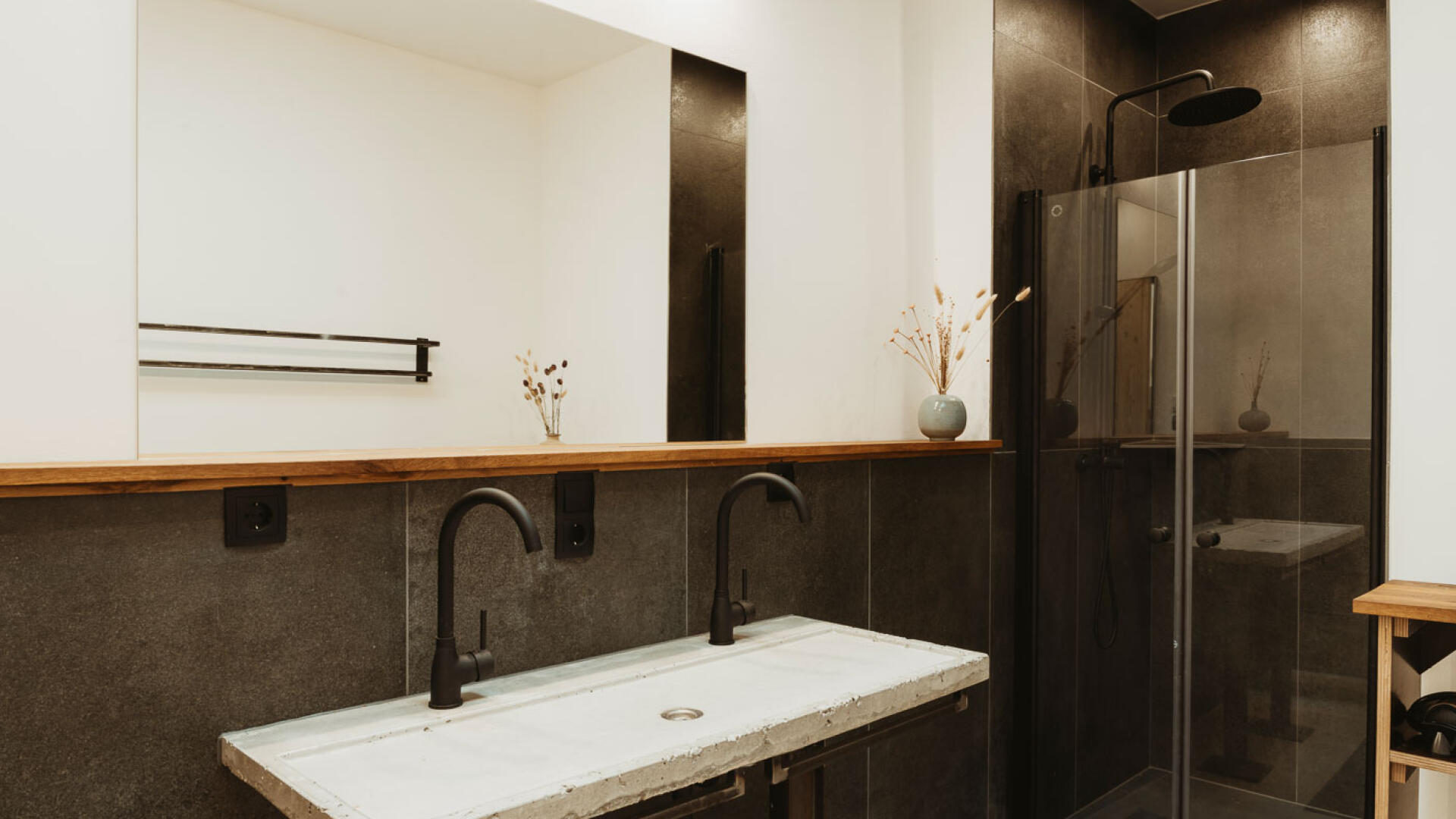Ursprünglich waren zwei Ferienwohnungen geplant und Lager und Werkstatt vorgesehen. Nach längerer Entwurfsphase und der Existenz des ehemaligen, großen Gaststättenraum, entwickelte sich das Projekt zu zwei größeren und einer kleineren Wohnung und einem Seminarraum mit Nebenanlagen und einer Küche. Die vorhandene Grundrissstruktur im Erdgeschoss musste auf Grund der früheren Nutzung nur geringfügig verändert werden. Der Nebensaal der Gaststätte wurde so zum großzügigen Eingangsbereich mit Abstellmöglichkeiten für die Gäste.