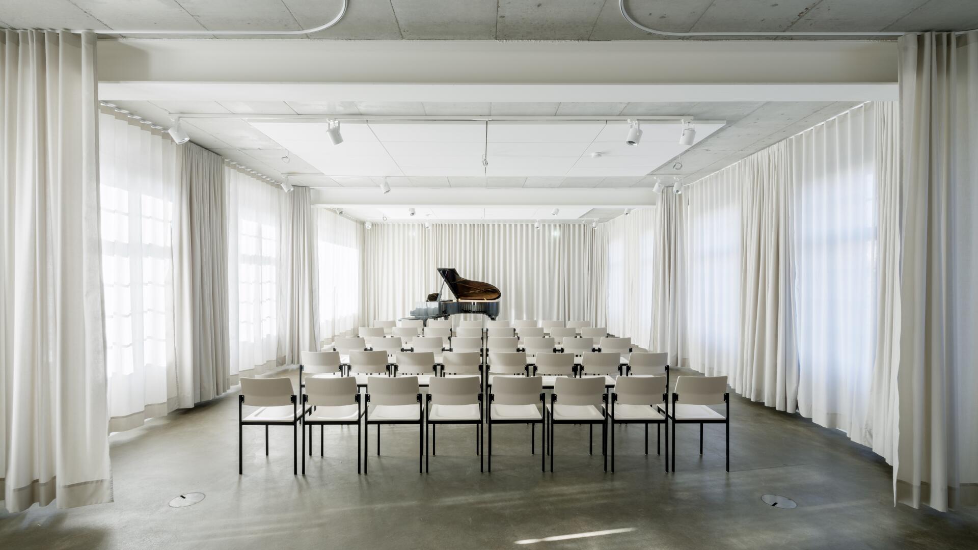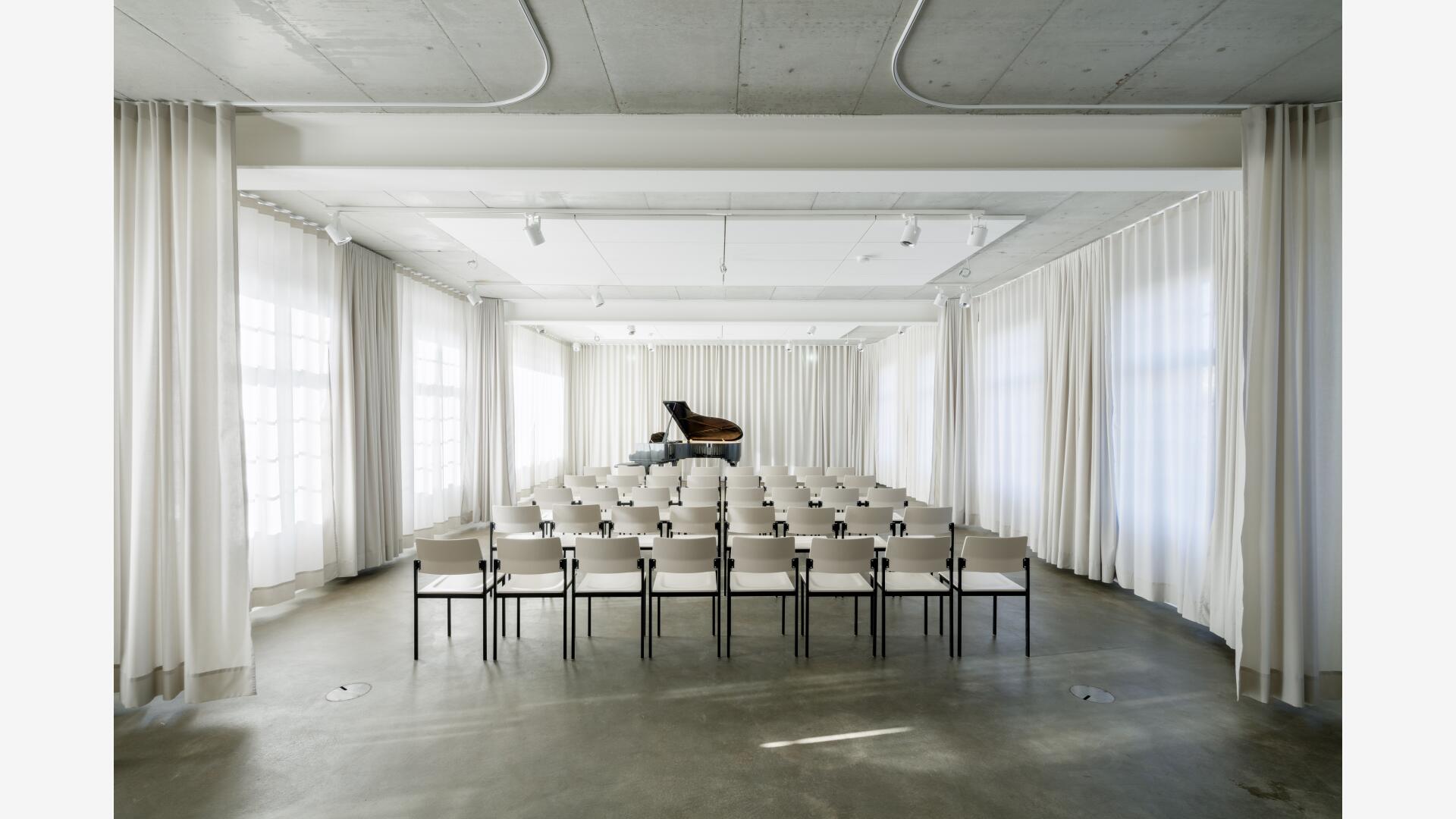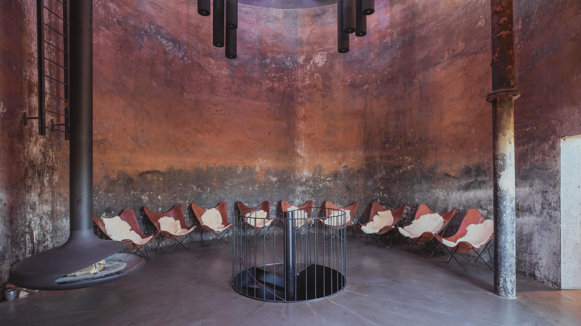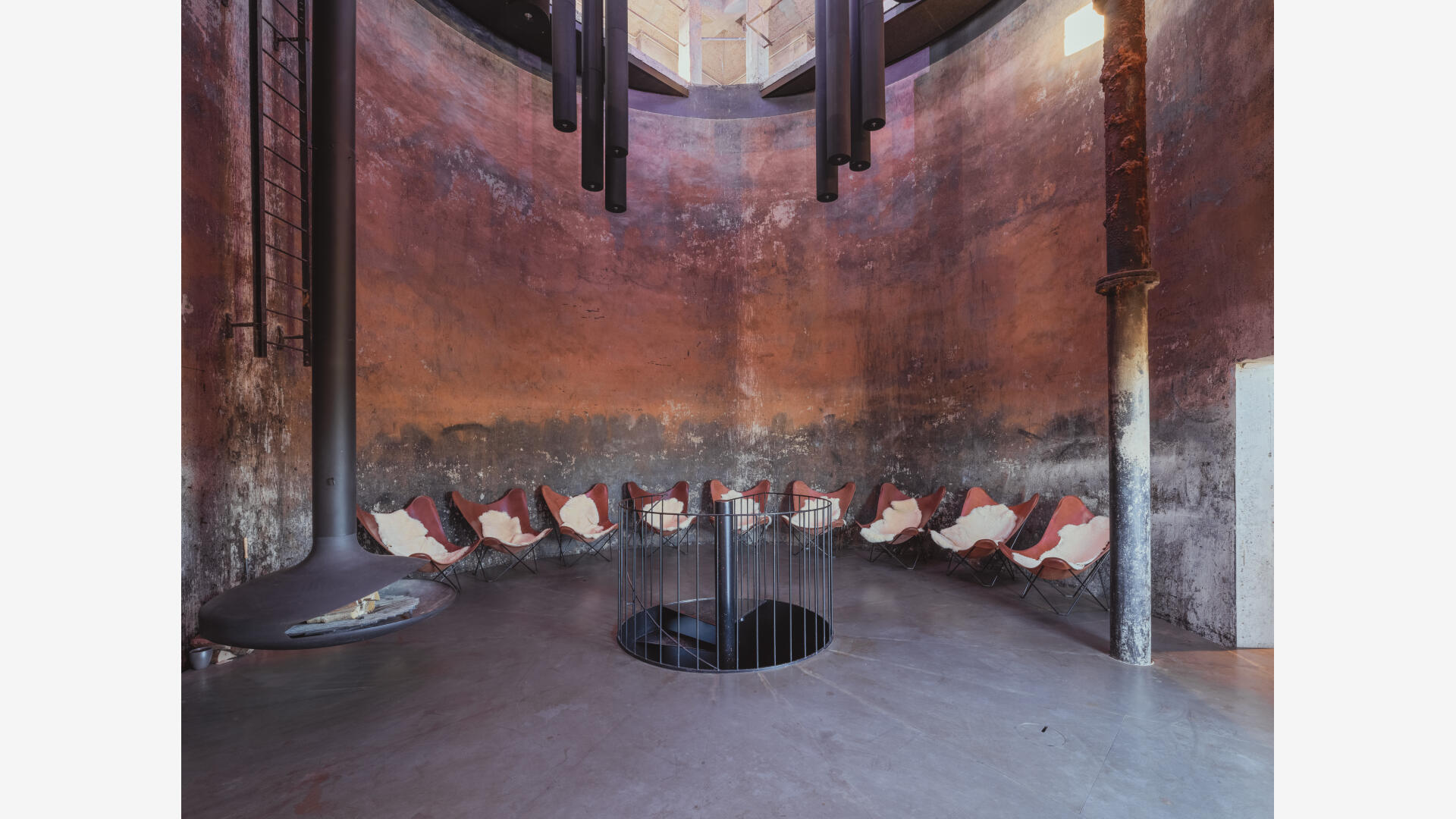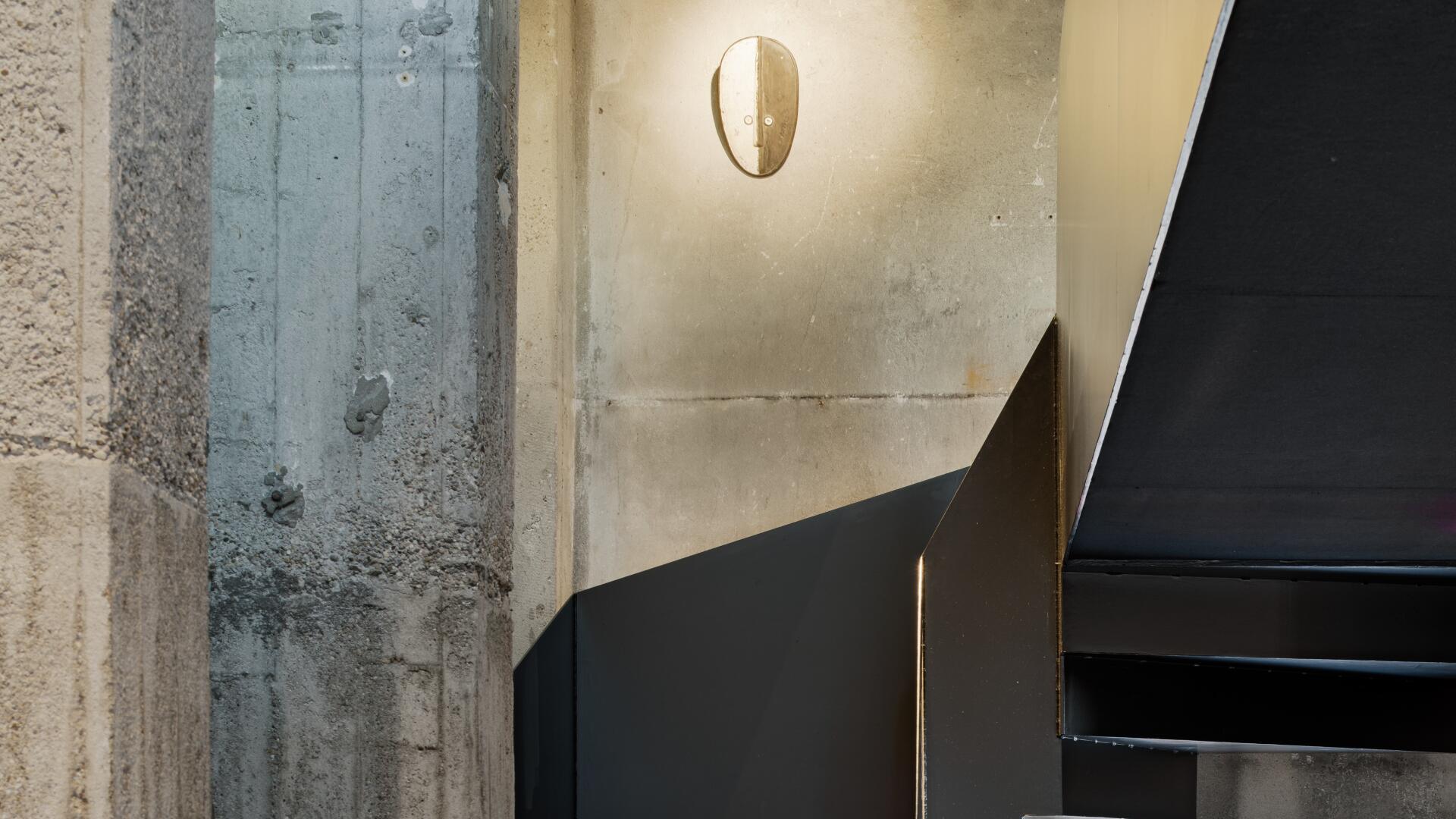 Im Sinne des denkmalgerechten Umgangs mit dem Gebäude bleiben die markante Figur und das Sichtmauerwerk unberührt. Der historische Tank bleibt erhalten und wird horizontal aufgesägt. In den Turmgeschossen verbindet eine als plastisches Element wirkende Stahltreppe die verschiedenen Räume. Eingeschobene Fluchtbalkone und ein Schaufenster zum Saal im Erdgeschoss machen das Innenräumliche nach außen hin sichtbar.
