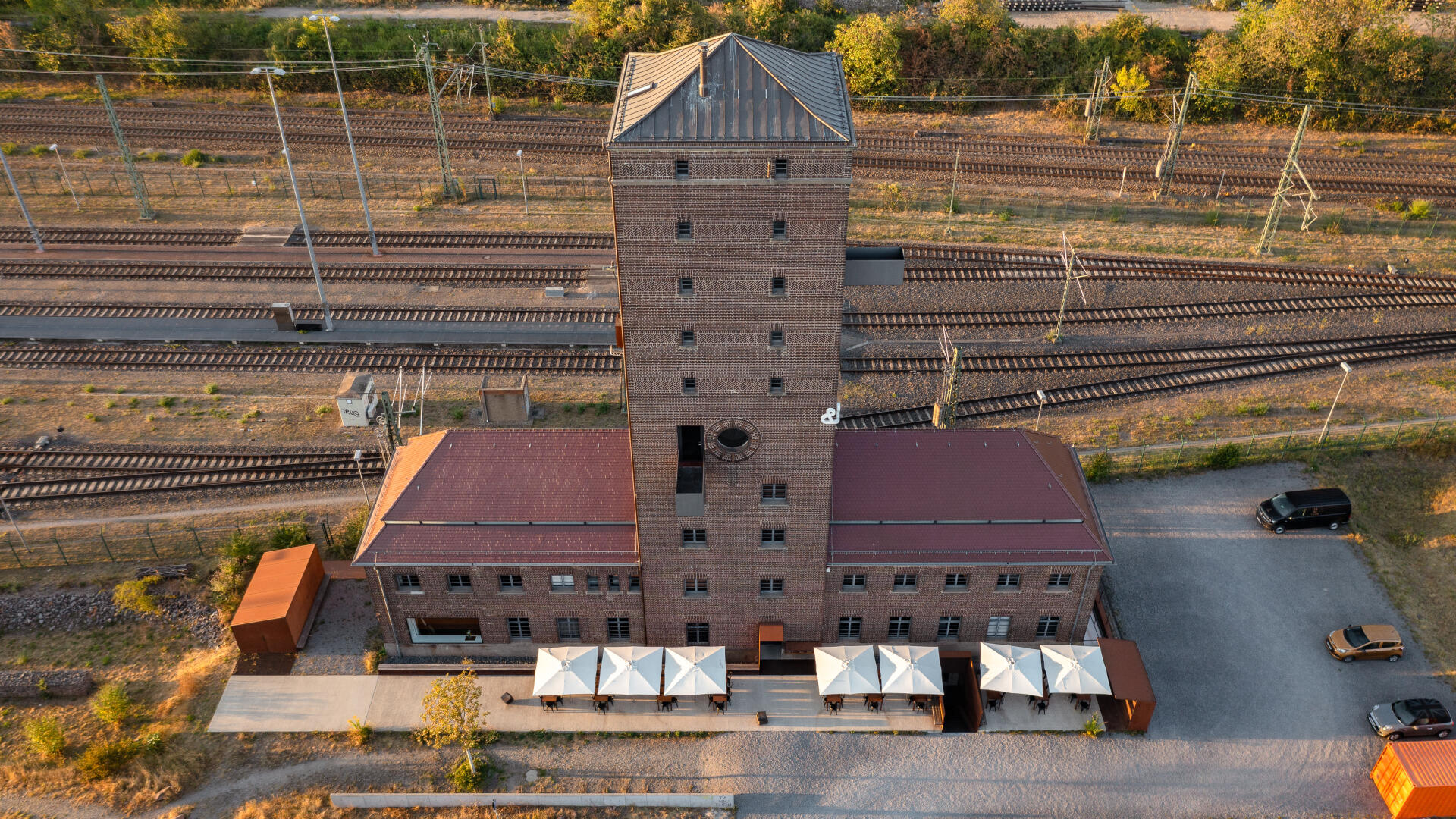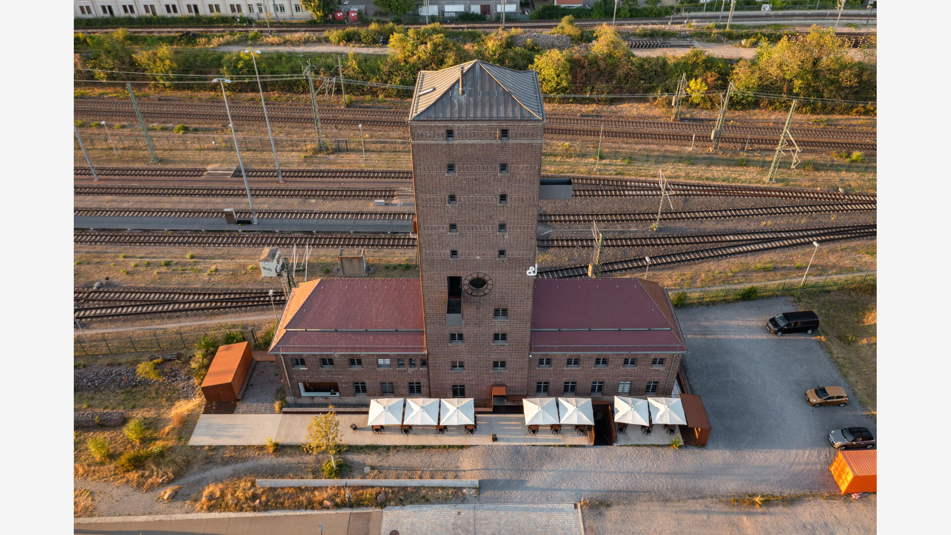 Durch feinsinnige Eingriffe in die Substanz des ehemaligen Bahnwasserturmes gelingt es, einen Kulturort zu schaffen, der kreative Arbeitswelten mit dem Charme eines Eisenbahngebäudes verbindet. Im Ostflügel befinden sich auf drei Etagen die Büroräume der Architekten, welche durch Lufträume miteinander verbunden sind. Im Westflügel gibt es diverse Seminar- und Veranstaltungsräume.