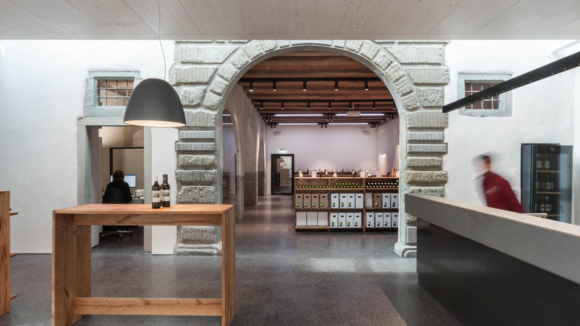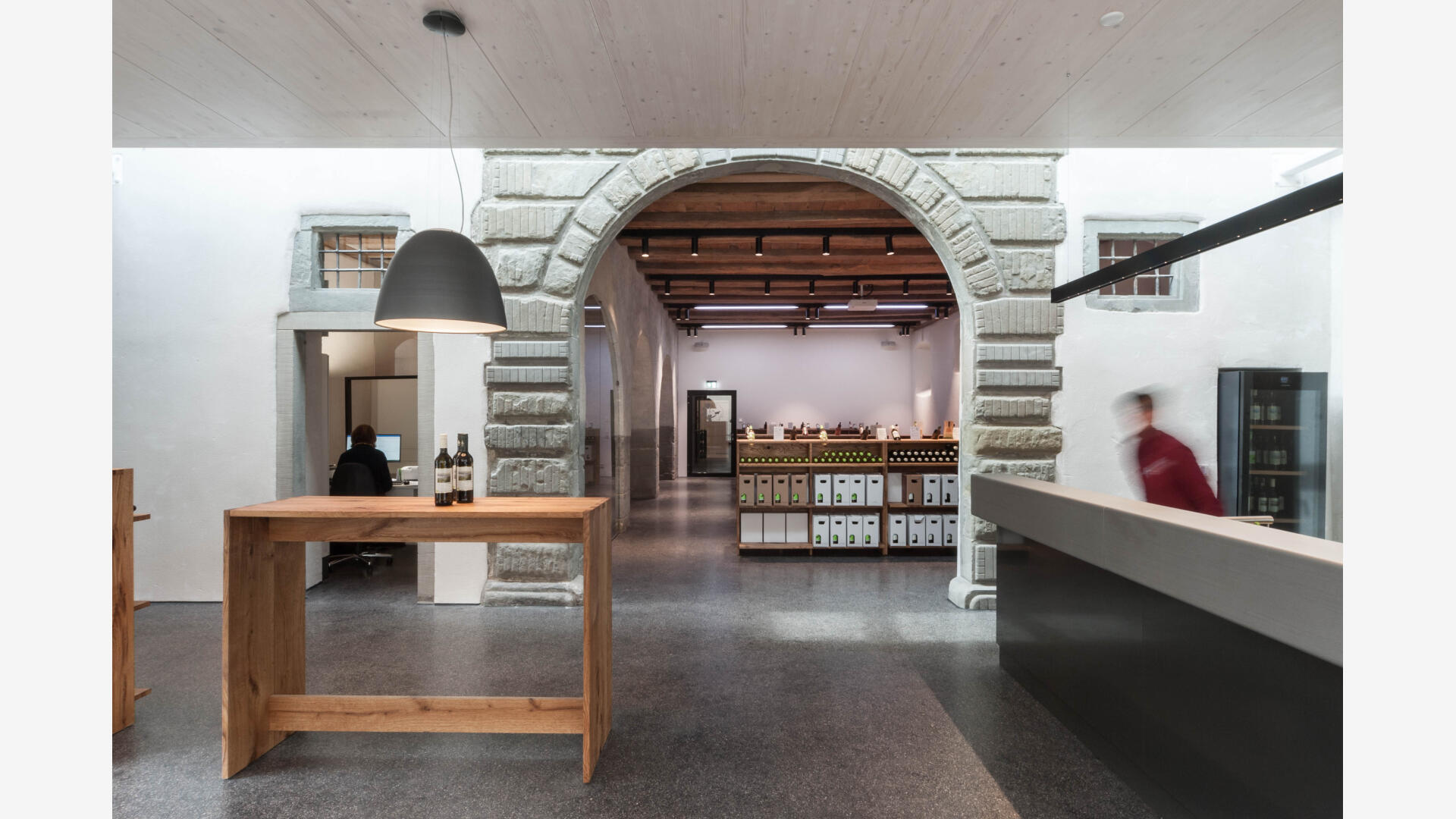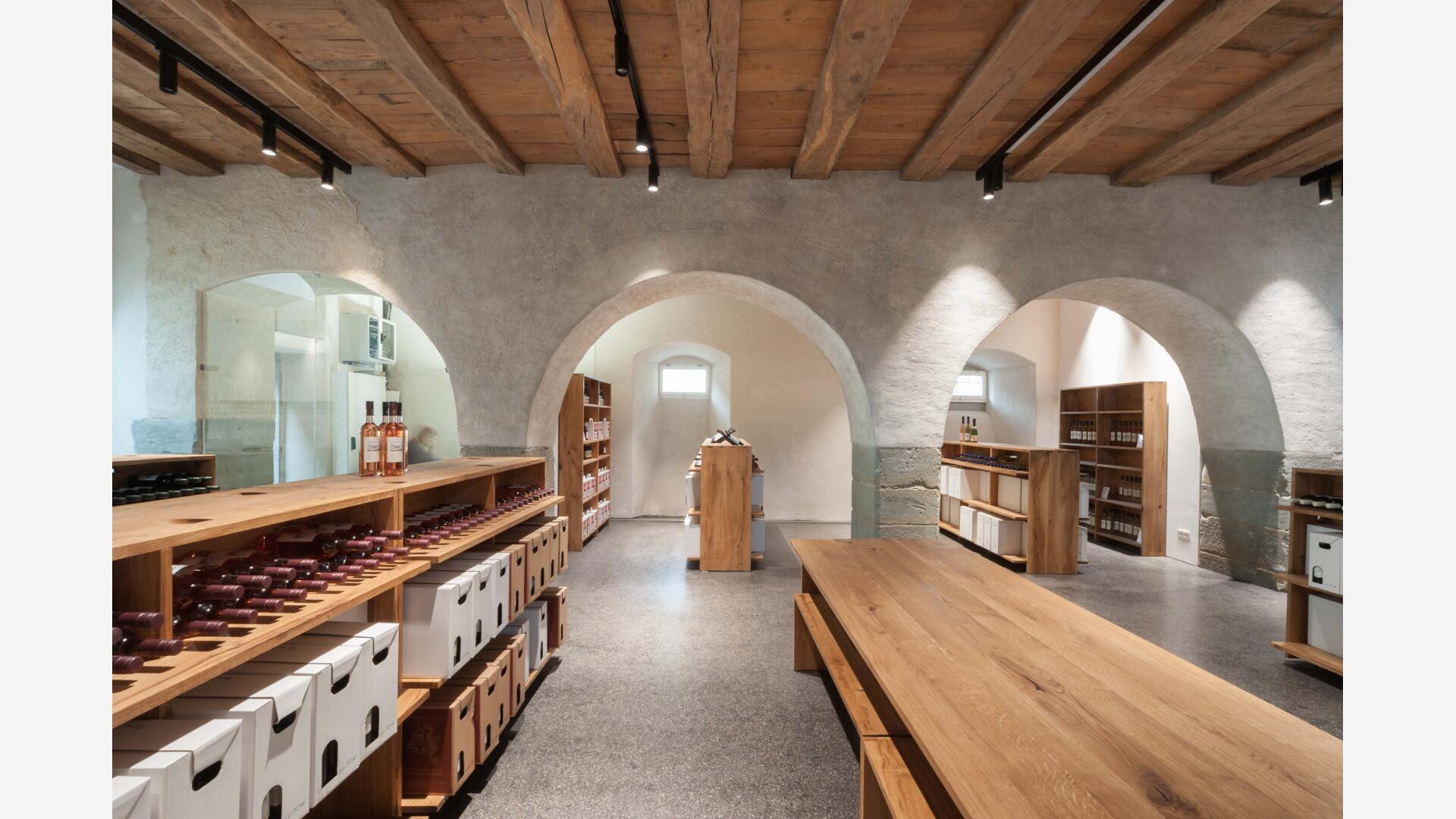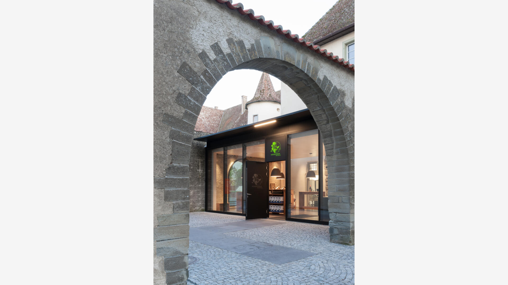 Auf der Klosterinsel befindet sich das Münster (Baujahr 1505-1511). Seit über 100 Jahren keltert der Winzerverein Reichenau seine Weine in den weitläufigen Kellerräumen. Aufgabe war es, den westlichen Konventsflügel, zu sanieren und für den Winzerverein um einen repräsentativen Eingangsbereich mit Degustationsmöglichkeit zu erweitern. Der Neubau fügt sich zurückhaltend aber zeitgemäß in den historischen Kontext ein. Eingeschoben zwischen zwei existierenden Mauerflügeln, die noch die ursprünglichen Außenmauern des Gebäudes bis an die ehemalige Klosterkirche hin markieren, wurde ein einstöckiges Gebäude erstellt, welches - konstruktiv autark - mit nur minimalen Eingriffen am Bestand auskommt. Das historische Steinportal wurde dabei über ein Oberlichtband effektvoll in Szene gesetzt.