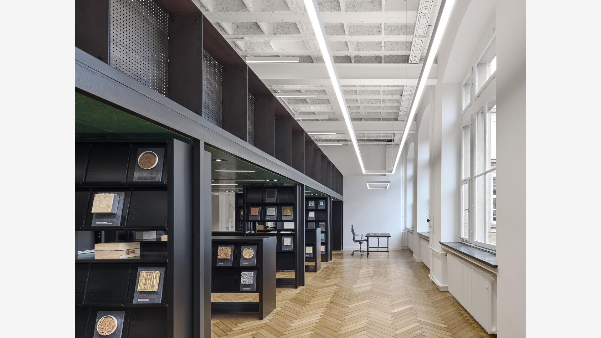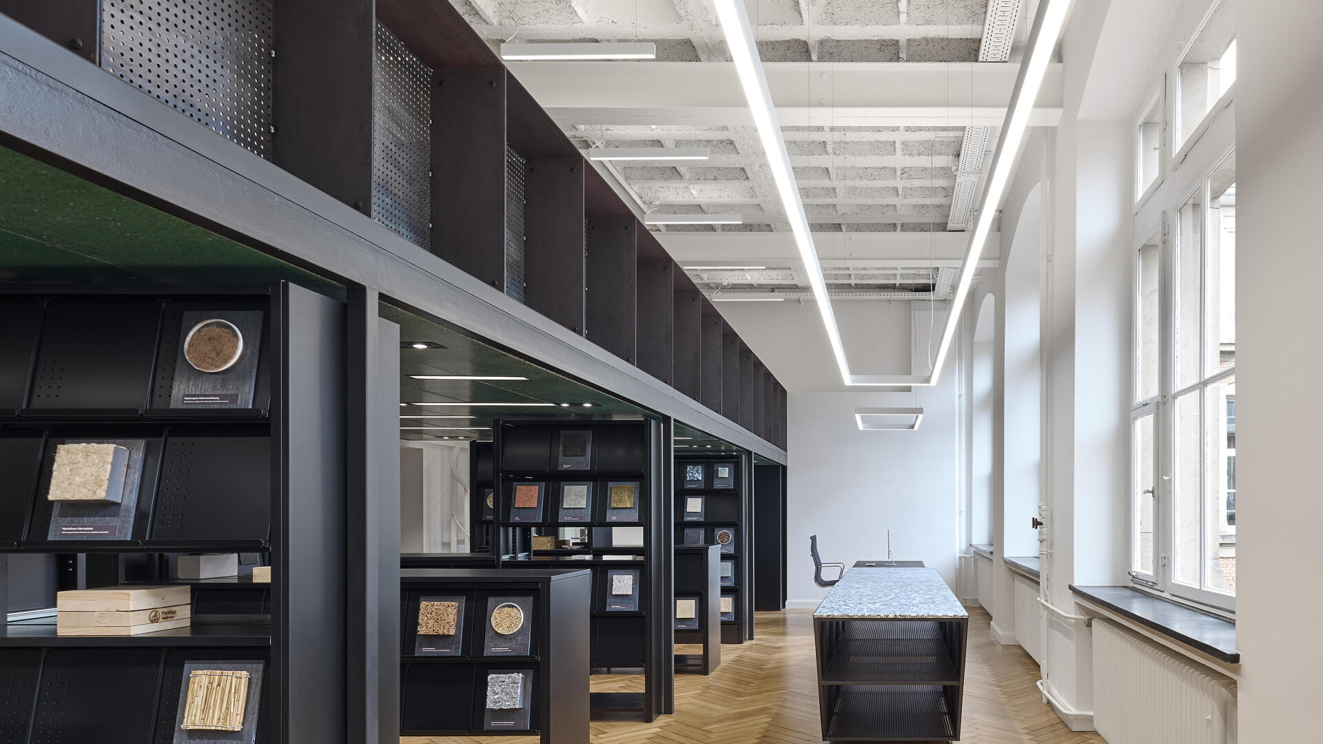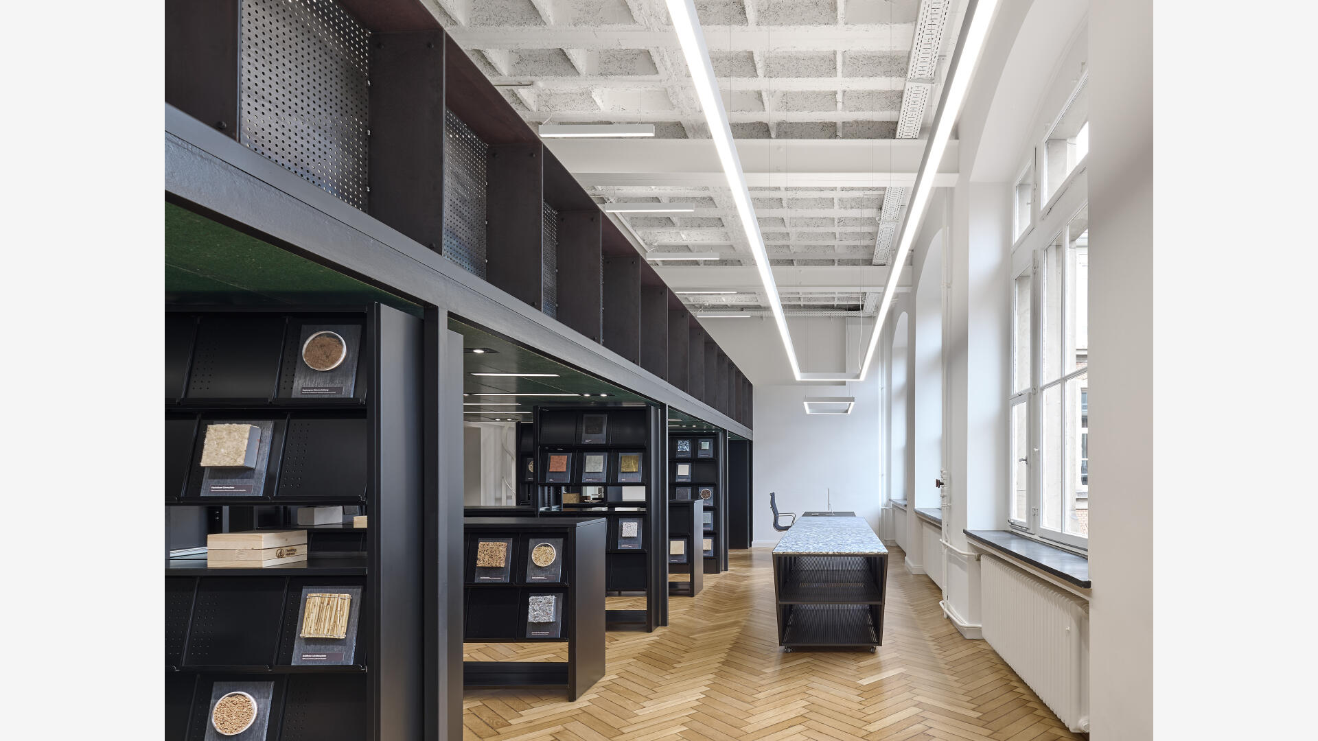 Die Materialbibliothek fungiert als Wissensspeicher und Wissensvermittler für innovative Baustoffe der Gegenwart und Zukunft. Dabei ensteht ein analoges und digitales Wissensgefäß, das zum Lernen, Forschen und Experimentieren einlädt.