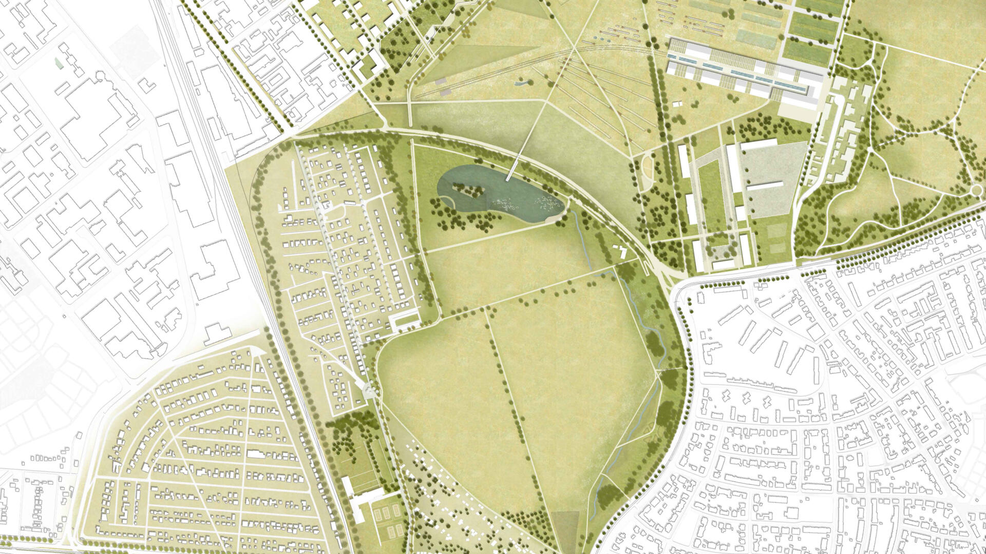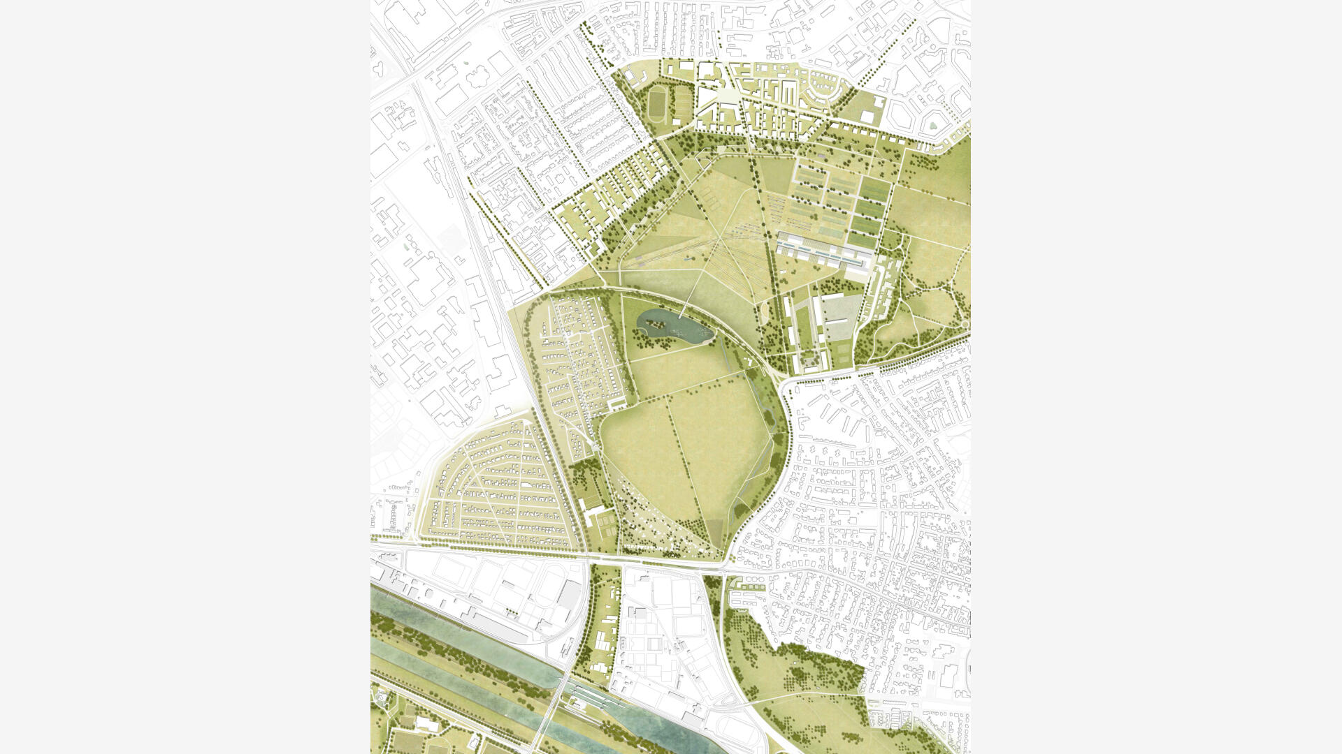 Gestaltungsgrundlage des 220 ha großen Grünzugs ist das Leitbild eines klaren Landschaftsparks mit extensiver Mitte und großartiger Weite sowie intensiveren Parkrändern mit kleinräumigen Qualitäten. Das Besondere und Vorbildhafte am Freiraumkonzept des neuen Grünzug Nordost innerhalb einer Stadtstruktur, ist die Gleichzeitigkeit und Gleichberechtigung einer naturnahen Landschaft mit all ihren positiven Effekten für Natur- und Wasserhaushalt, Biodiversität, Stadtklima und -ökologie, Biotopvernetzung und extensiver Landwirtschaft sowie das Bestehen eines attraktiven, qualitätvollen Bewegungs- und Naherholungsraumes für den Menschen. Dabei verzichtet der Entwurf nicht auf Gestaltung und Ästhetik. Das Konzept einer werthaltigen Stadtlandschaft - ein Pilotprojekt für andere Städte.