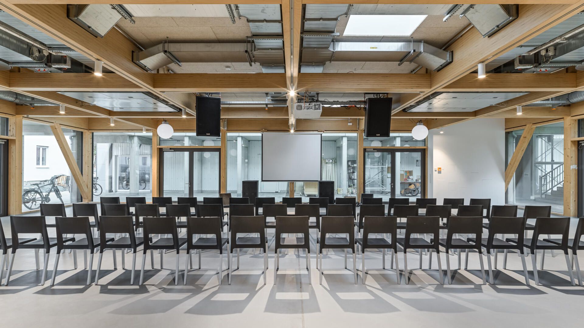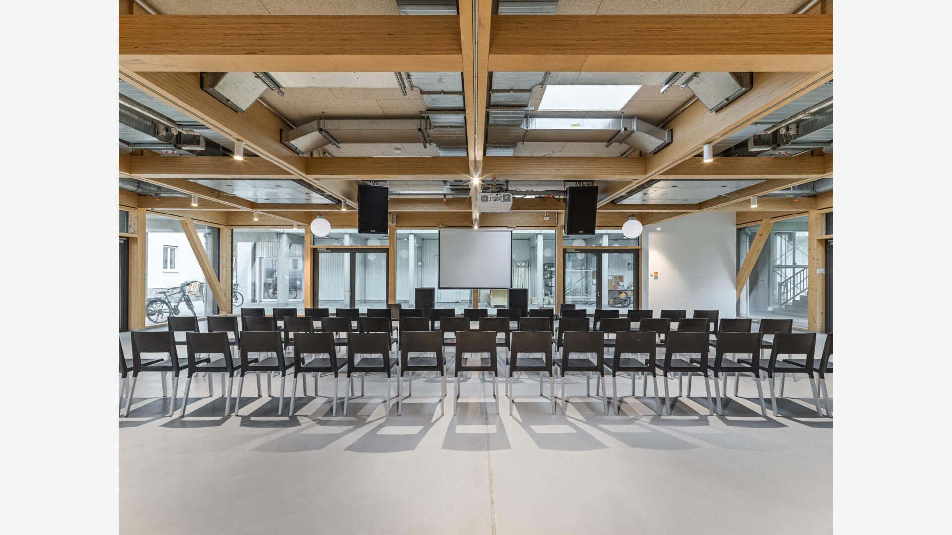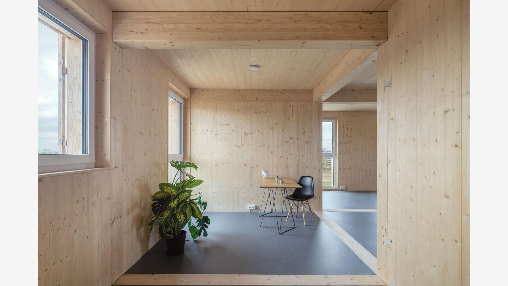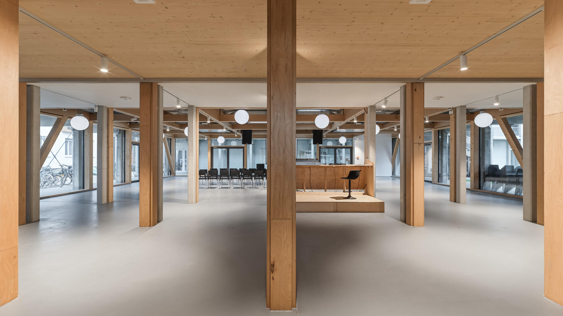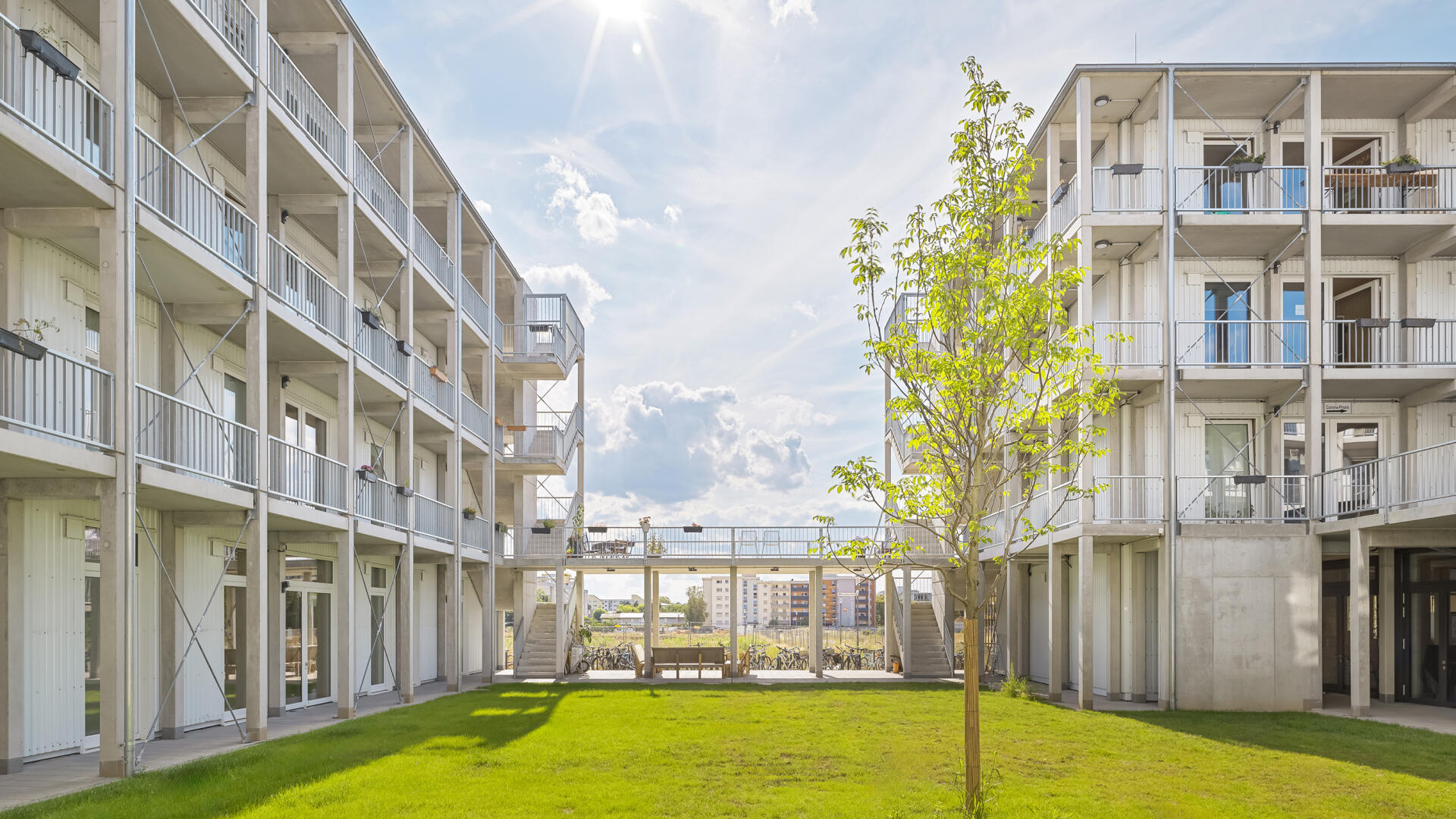 Innovative Holzbauweise: Flexible Grundrisse. Erste mehrgeschossige Holzarchitektur mit 5.000 Quadratmetern NF ohne Stahlverbindungen. Primärkonstruktion ausschließlich aus Zimmermannsverbindungen. Selbstbau/Versetzen der Innenwände zu jeder Zeit bei laufendem Betrieb. Günstiger Wohnraum für Studierende mit selbstverwaltetem, sozial-ökologischem Zusammenleben, flächensparendes Wohnen mit hoher Lebensqualität (Suffizienz), pro Kopf 20,7qm Wohnfläche. Das Gebäude wird zum Labor, in dem Bewohnende Raumbedarf, Nutzung und Zuschnitt der Wohnungen rekonfigurieren. 176 Wohnplätzen, Versammlungsstätte, Werkstatt, Multifunktionsraum, Außenraum. KFW40-Plus Gebäude, bilanziell Plus-Energie mit PV-Anlage und Batteriespeicher. Hohe Recyclingrate, CO2-Ersparnis, praktisch klimaneutrale Bauweise.
