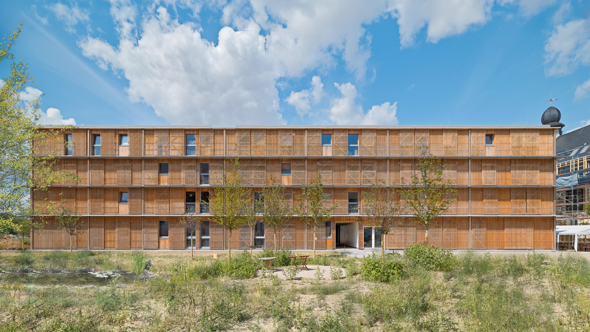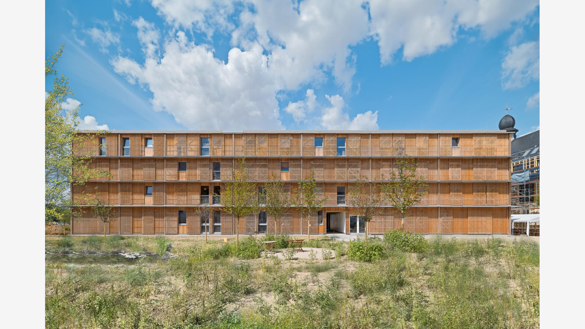 Bauherrin: Collegium Academicum GmbH, Heidelberg; Fotos: Thilo Ross (Urh. Nr. 4026999, Quelle: DGJ Architektur GmbH); Gewerke: Biek Architektur, Frankfurt am Main; GDLA Gornik Denkel landschaftsarchitektur partg mbb, Heidelberg; ZÜBLIN Timber GmbH, Aichach; ina Planungsgesellschaft mbH, Darmstadt; Pirmin Jung Deutschland GmbH, Sinzig; Jäger Ingenieure, Radebeul; SBI schicho ingenieure GmbH & Co. KG, Regensburg; IBS Scholz GmbH & Co.KG, Regensburg; HEG Heidelberger Energiegenossenschaft eG; HHP, Berlin; Schoob Architektur, Offenbach am Main; HAGELAUER+SCHEUERER GeoConsult GmbH, Walldorf; Ingenieurgruppe Bauen, Mannheim; hci HENNIG CONSULTING IMMISSIONSSCHUTZ, Heidelberg; Gebauer + Manser Ingenieurgesellschaft mbH, Heidelberg-Pfaffengrund; Schlatter Rechtsanwälte Steuerberater PartG mbB, Heidelberg;