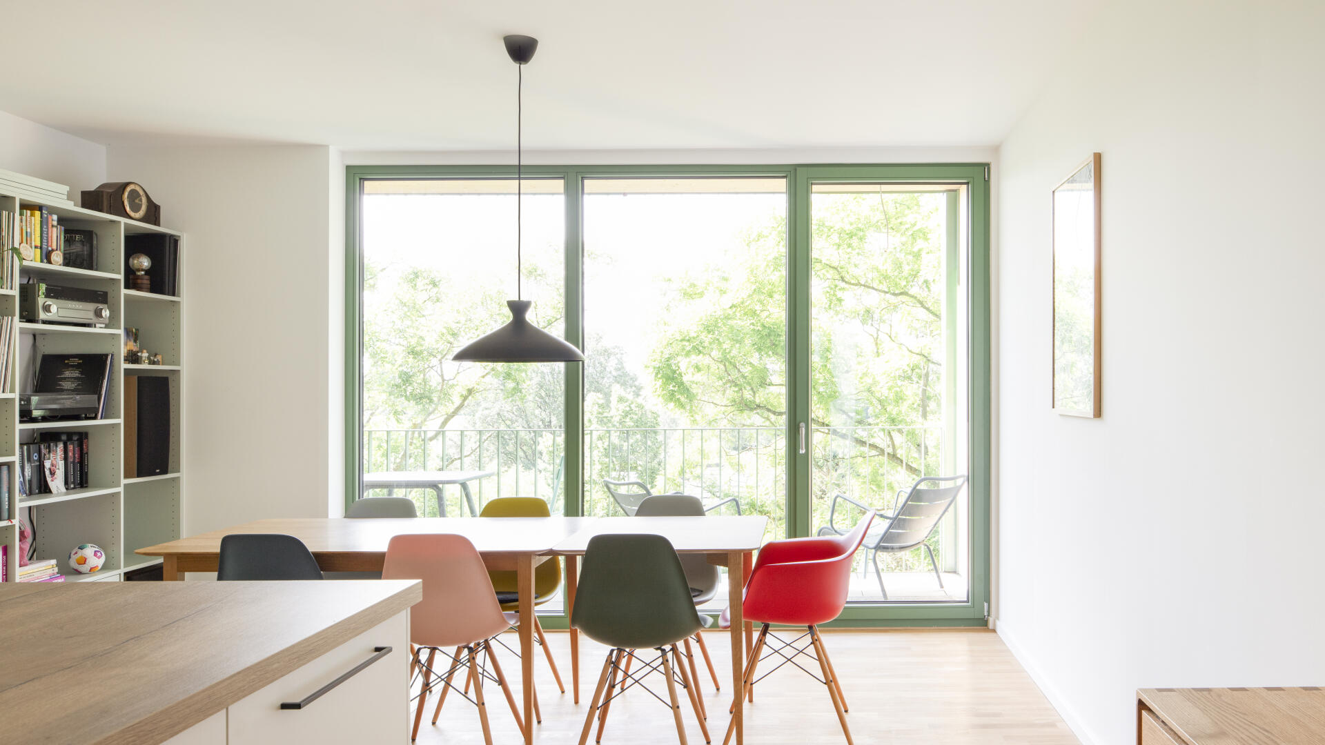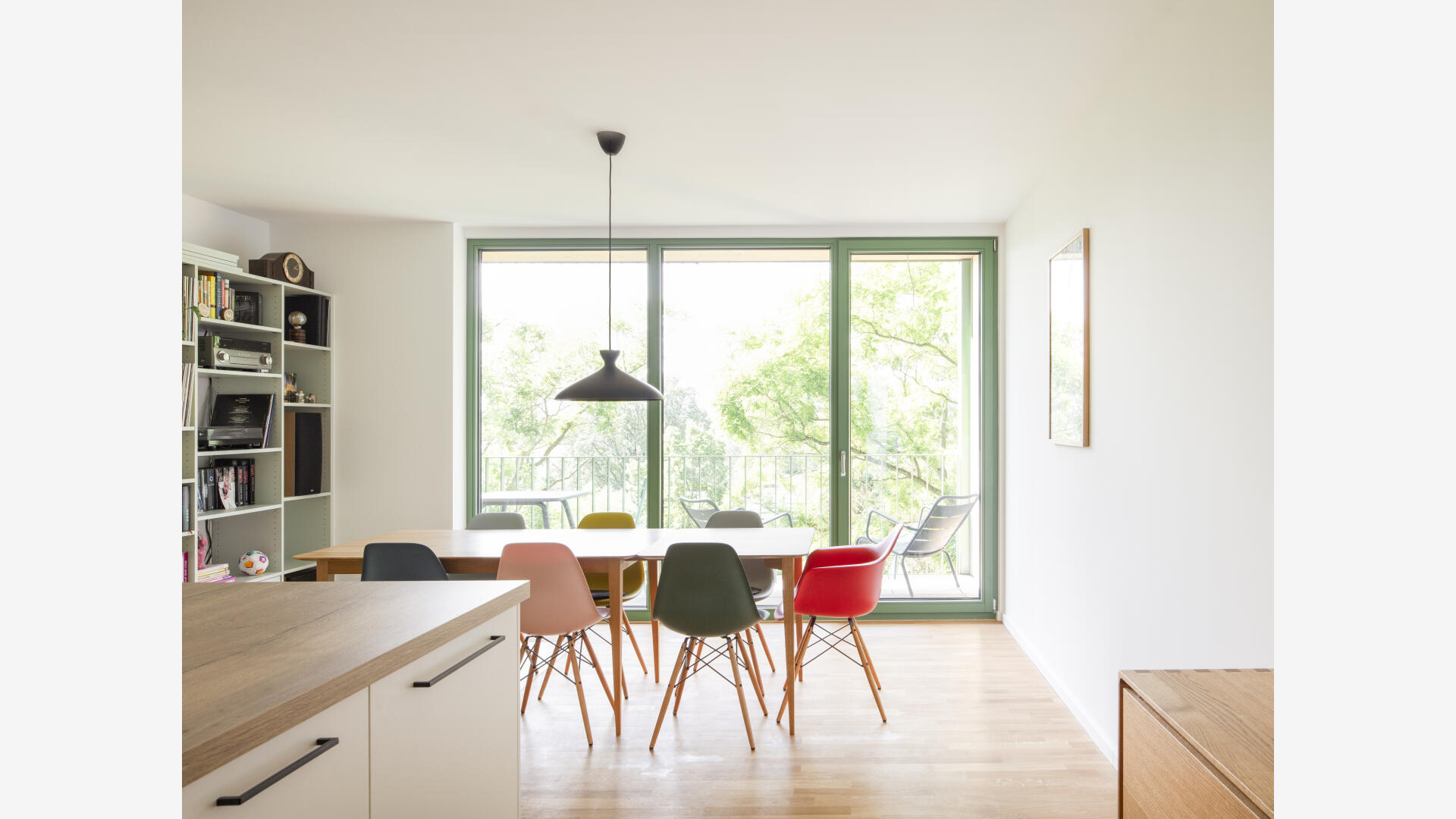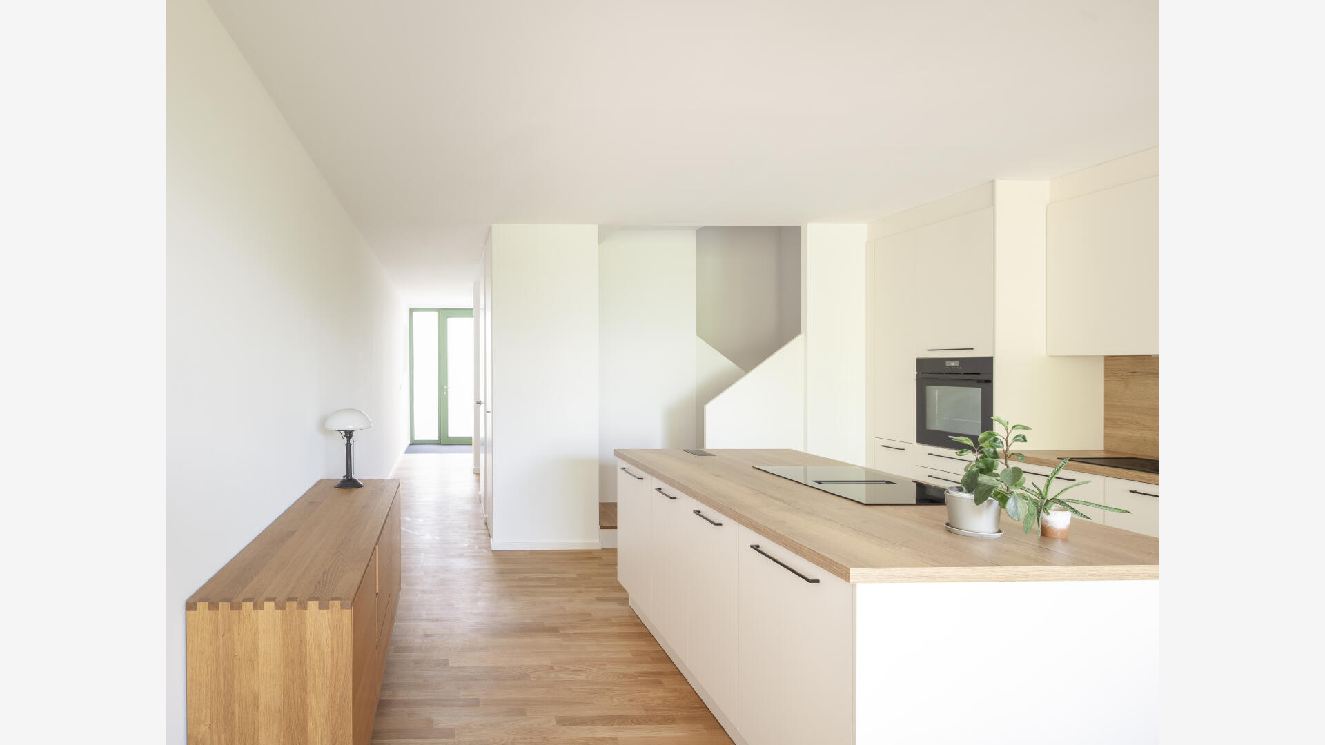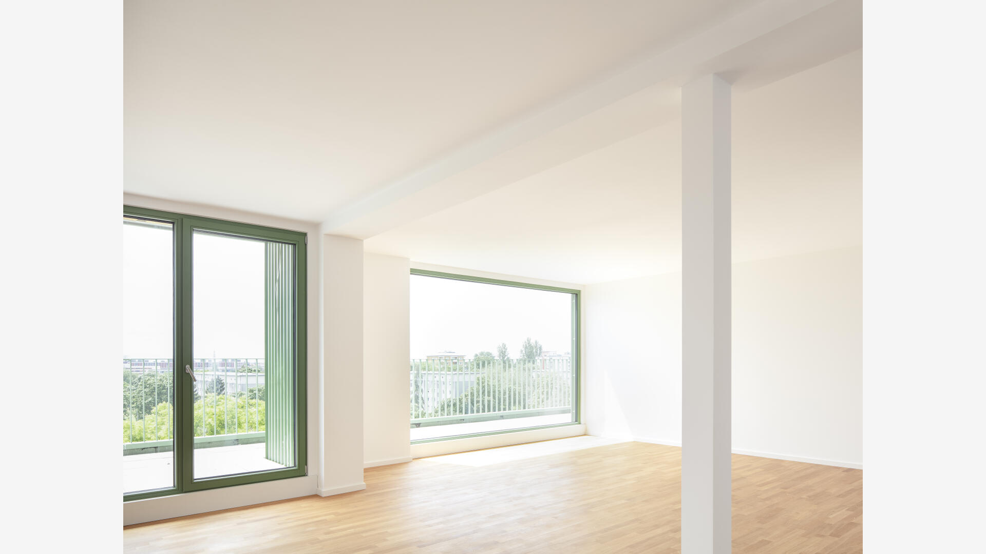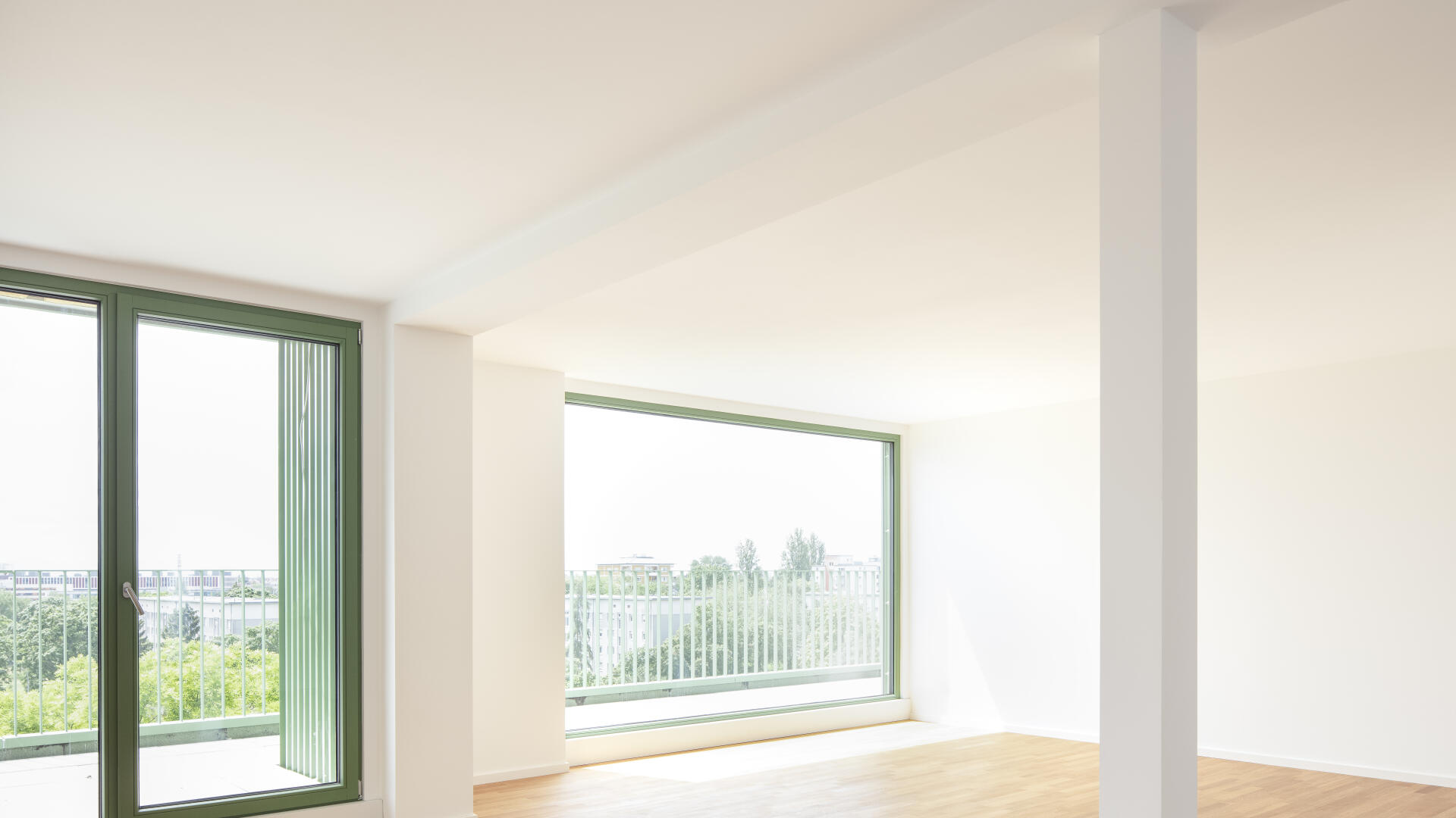 Das Wohnhaus NORDGRÜN ist als Aufstockung auf ein altes Betriebsgebäude konzipiert; mit dem Ziel, im Kontext von Nachverdichtung Wohnraum ohne neue Flächenversiegelung zu schaffen. So entstehen 21 helle, flexibel nutzbare Wohnungen in vier Typen zw. 60 und 120 qm, basierend auf dem Raster des Bestandsbaus. Diese werden über einen Laubengang erschlossen, der über zwei außen liegende Treppentürme erreicht wird. Die Einheiten binden bis zur Südseite durch, wo Loggien und Terrassen eine Aussicht bis zum Schwarzwald bieten. Das KFW40-Gebäude mit Massivholzwänden und -decken lagert auf einem „Stahltisch“ um das Bestandsgebäude. Die Fassade aus grünem Trapezblech ist beständig, kostengünstig, sortenrein rückbaubar und gibt dem Gebäude zusammen mit den Staketengeländern eine feingliedrige Haptik.