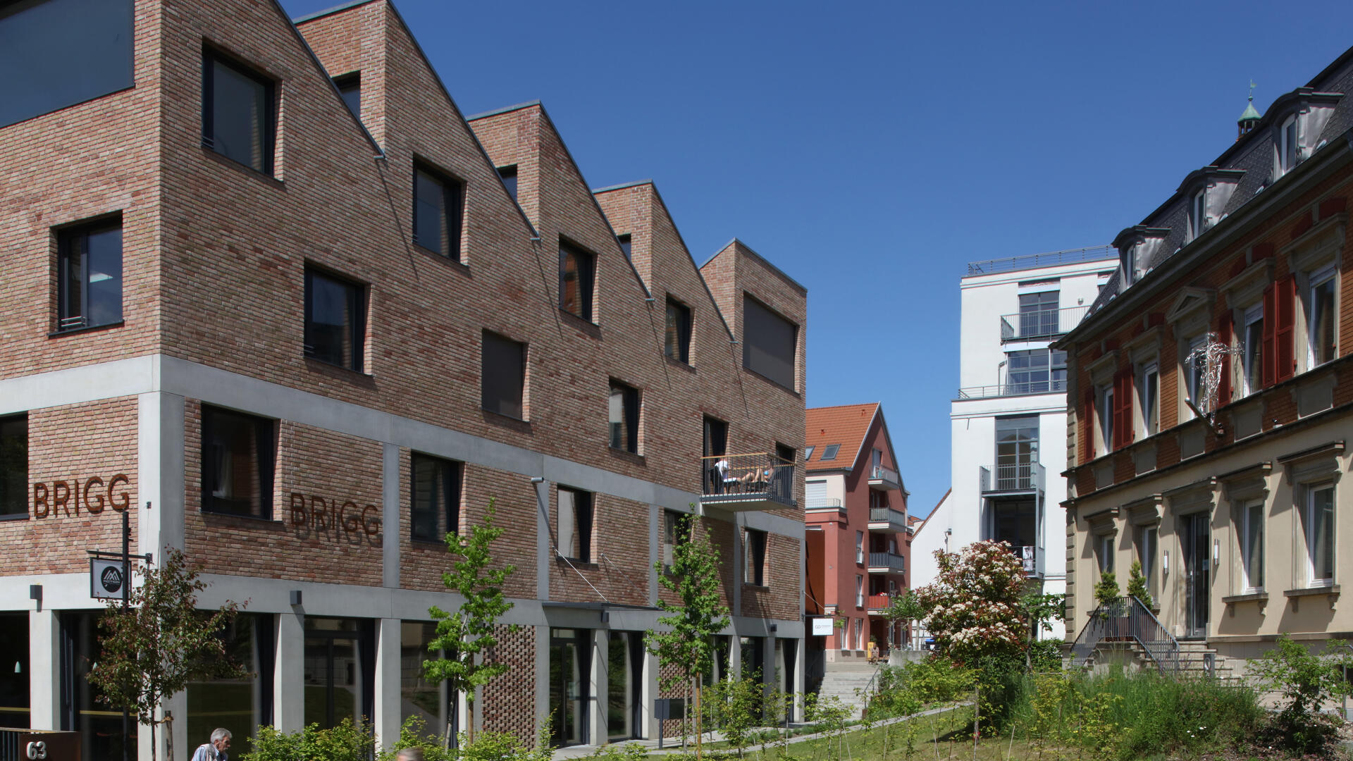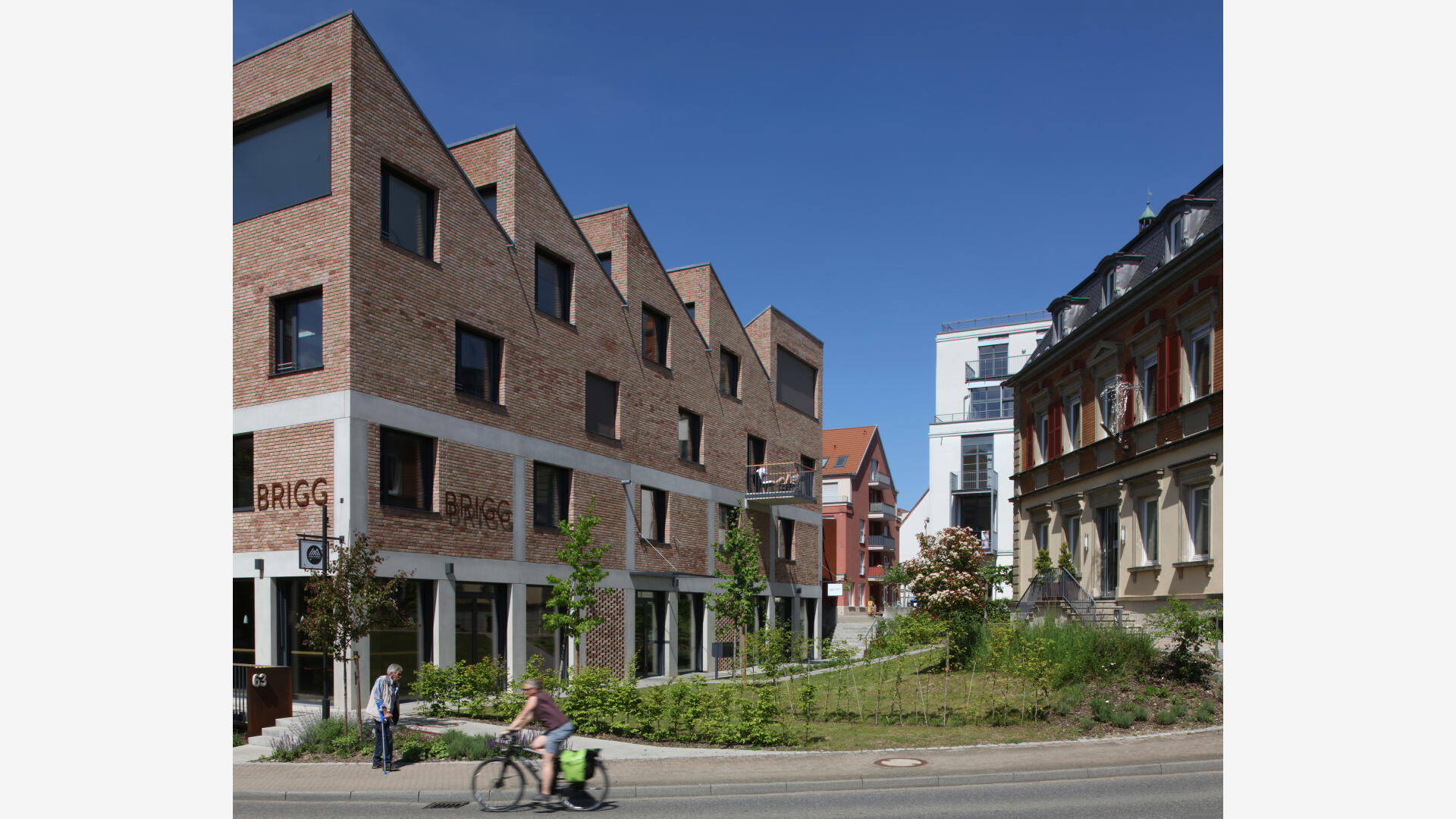 Gottmadingen ist seit 1821 architektonisch von den Industriegebäuden der Bilger-Brauerei und des Landmaschinenherstellers Fahr geprägt. Das Brigg will diese räumliche Flexibilität und industrielle Atmosphäre in ein Wohngebäude übersetzen. Jede Wohnung hat ihr Sheddach, in welchem sich die Individualität der Bewohner widerspiegelt. Terrassen zum Innenhof, Gemeinschaftsräume und eine Küche im EG laden Mieter und Nachbarn zum Austausch ein. Gewerbeflächen im Gebäude ergänzen das Angebot. Das Ziegelmauerwerk verbindet den Neubau mit der umgebenden historischen Bausubstanz materiell, erinnert an die Geschichte des Ortes. Wohnen wird im Brigg als ein flexibles, sich immer wieder wandelndes System unterschiedlicher Gewichtung und Vernetzung menschlicher Beziehungen gelebt.